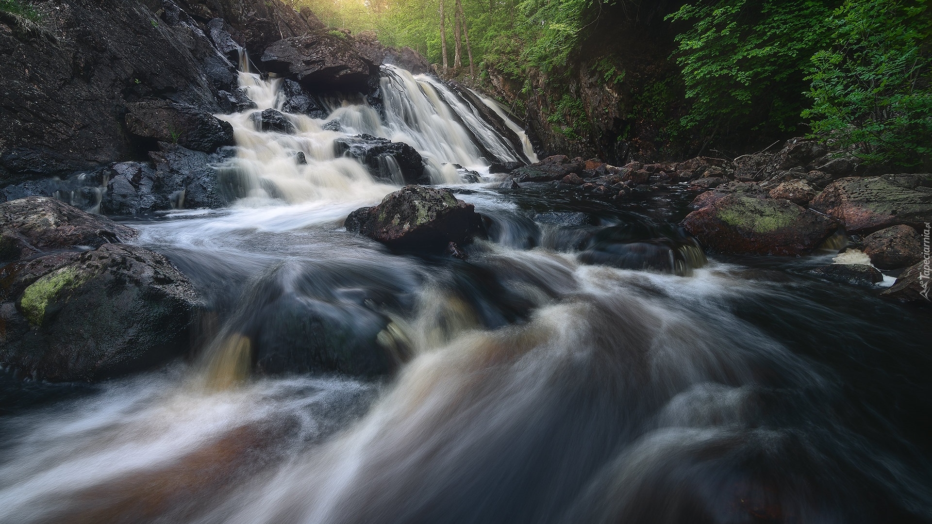 Edytor tapety: Kamienie i skały na leśnej rzece