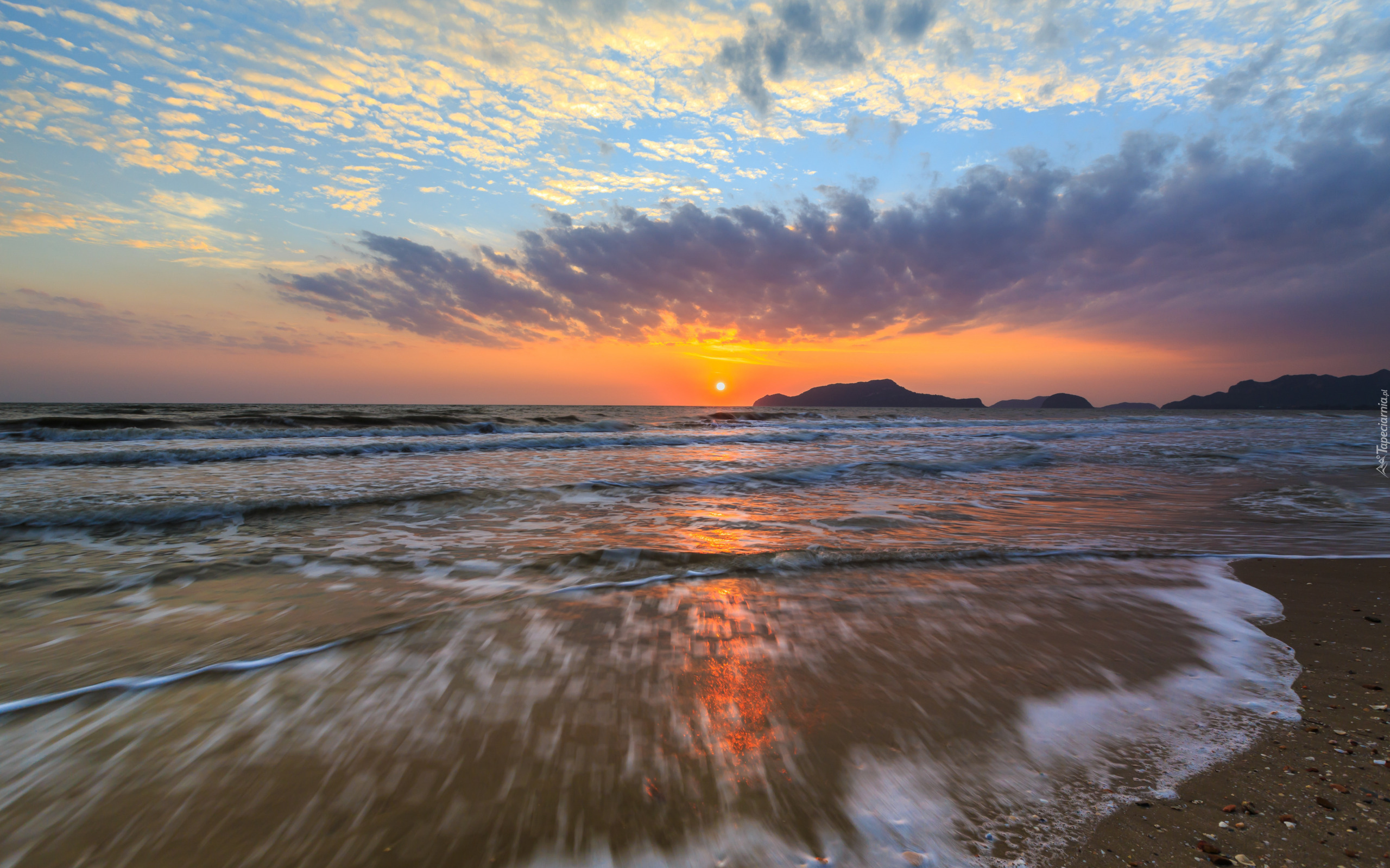 Edytor tapety: Zachód słońca i fale morskie na plaży