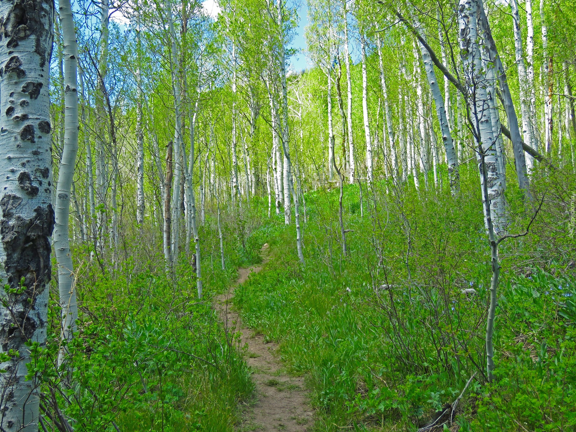Edytor tapety: Rośliny przy ścieżce w osikowym lesie