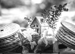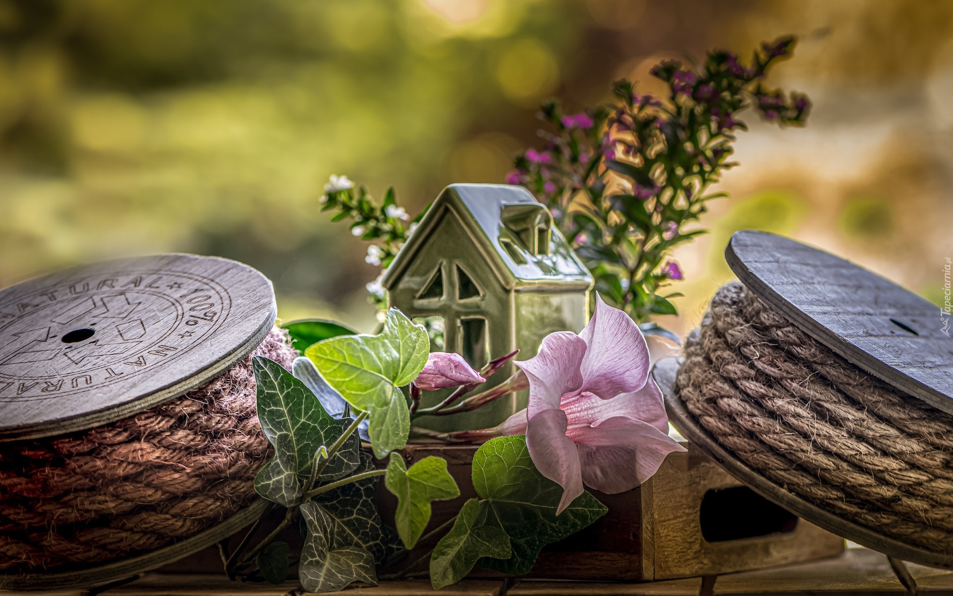 Edytor tapety: Powój obok ceramicznego domku i sznurka
