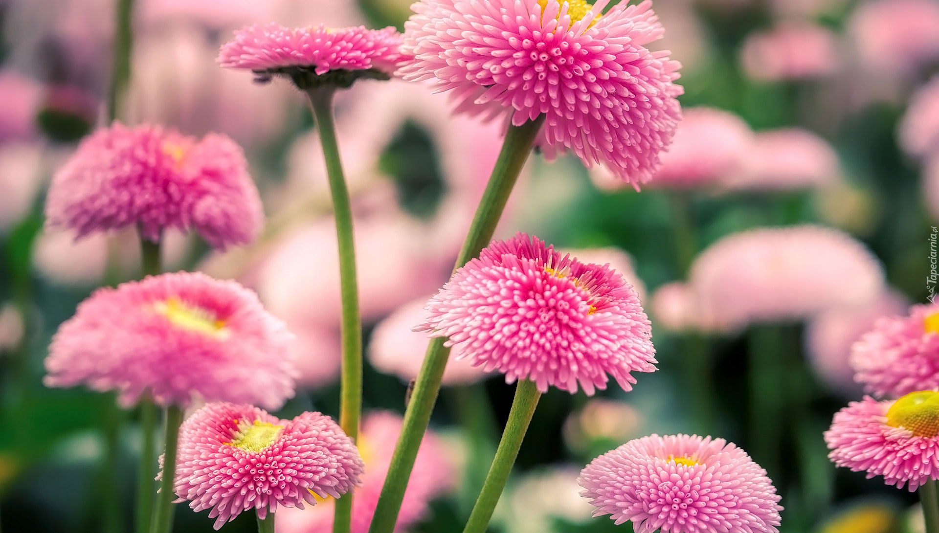 Edytor tapety: Różowe stokrotki pełne