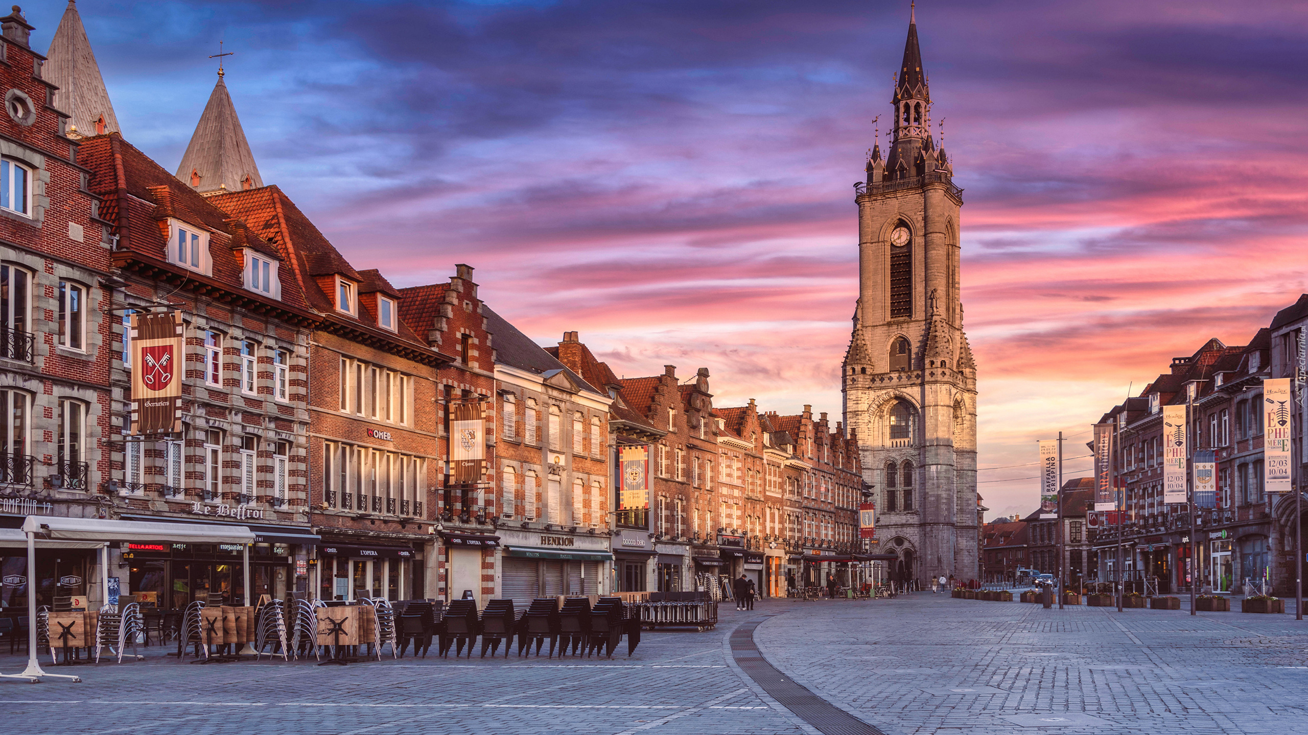 Edytor tapety: Dzwonnica i domy na placu w Tournai