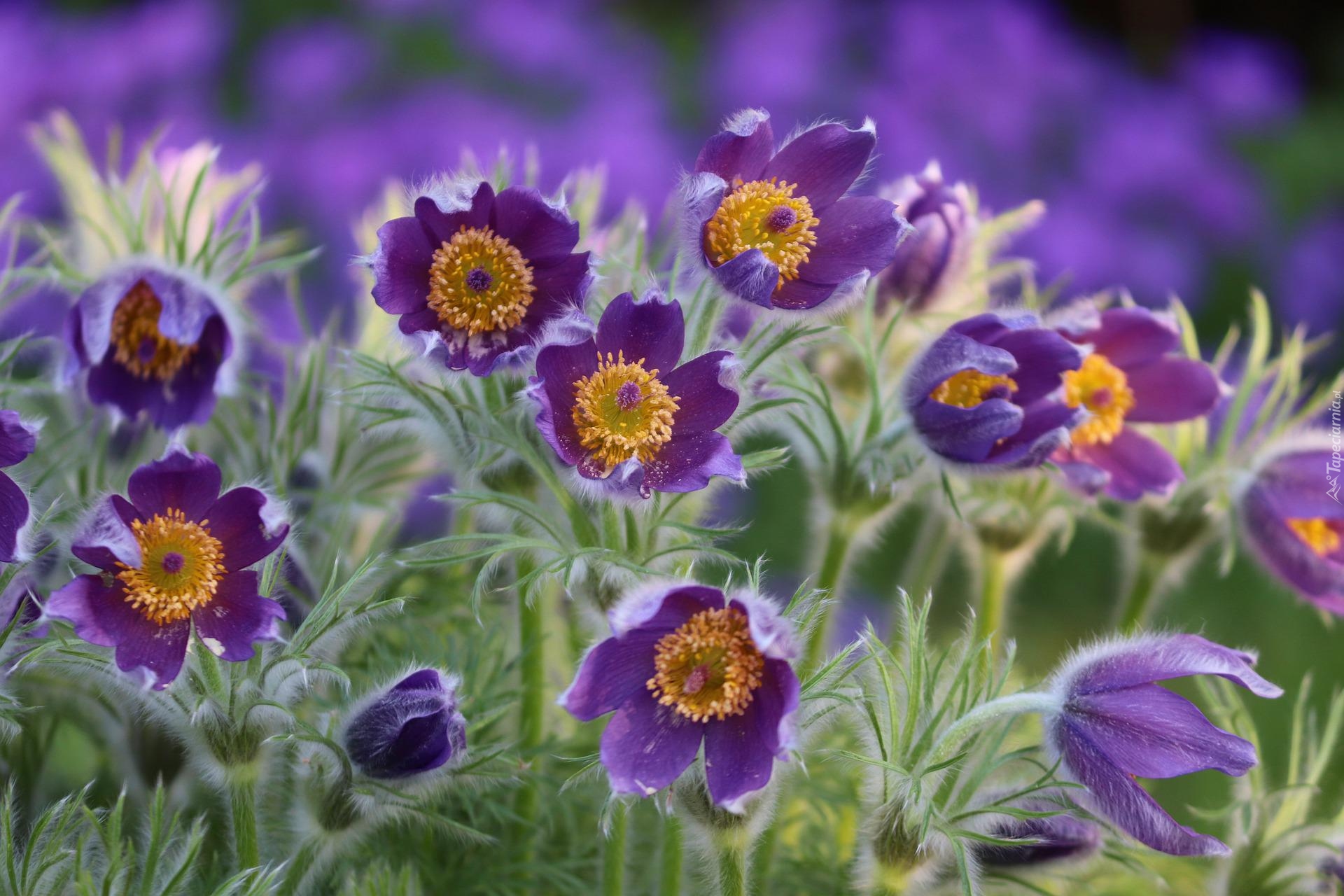 Edytor tapety: Rozkwitające i pochylone fioletowe sasanki
