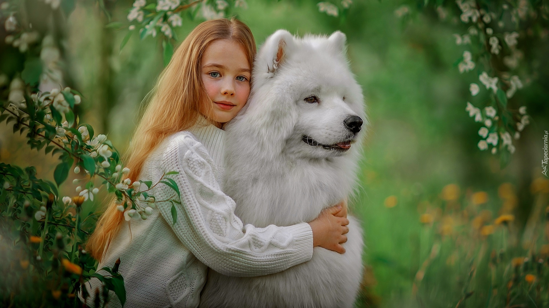 Edytor tapety: Dziewczynka z białym samojedem
