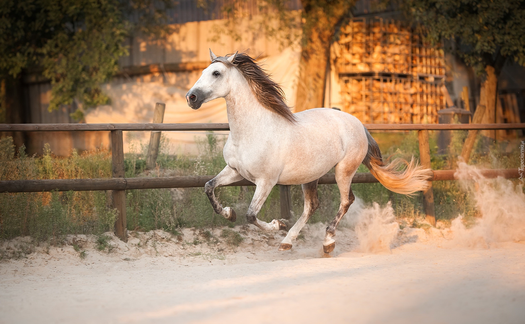 Edytor tapety: Biały koń przy ogrodzeniu