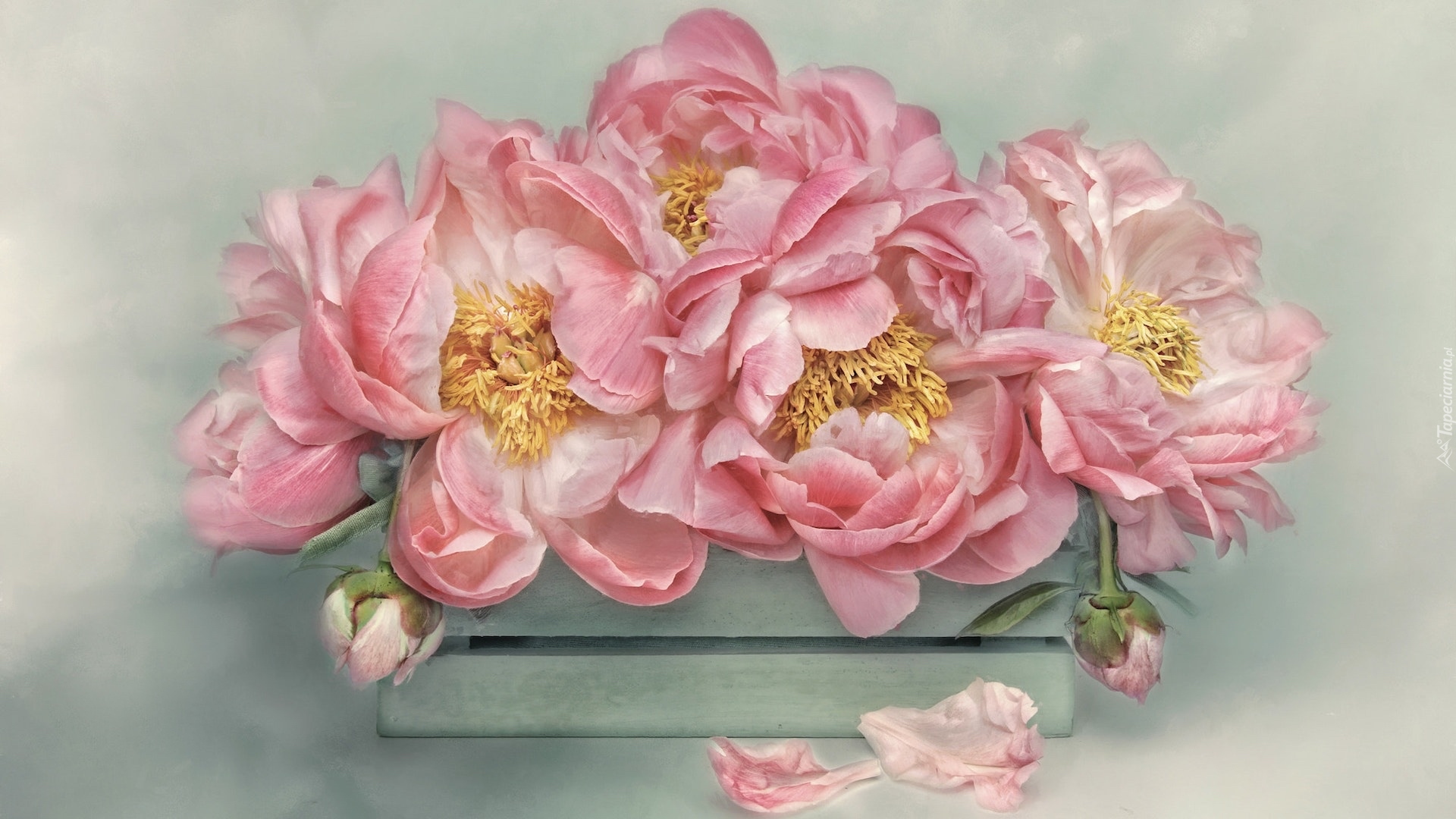 Edytor tapety: Piwonie w skrzynce