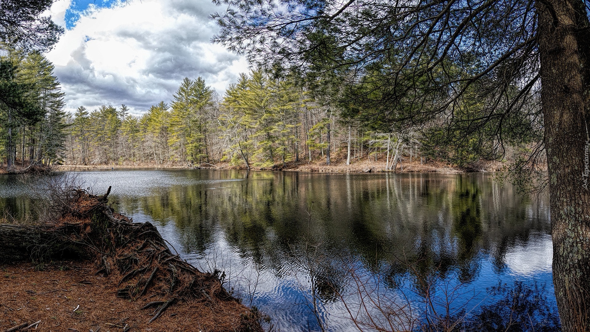 Edytor tapety: Drzewa nad jeziorem Peppers Mill Pond w Ware