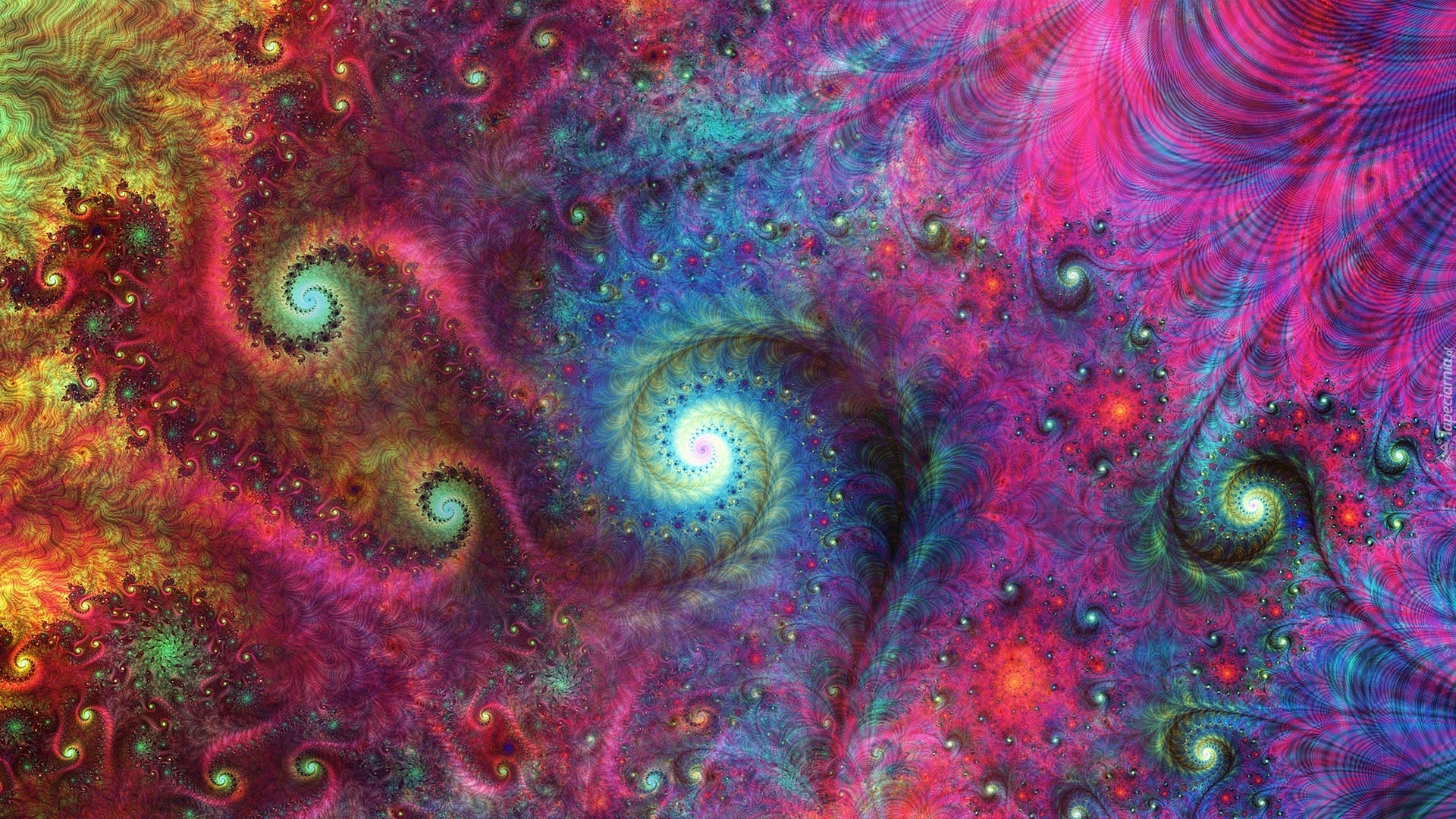 Edytor tapety: Spirale na różowo-niebieskim tle w grafice fraktal