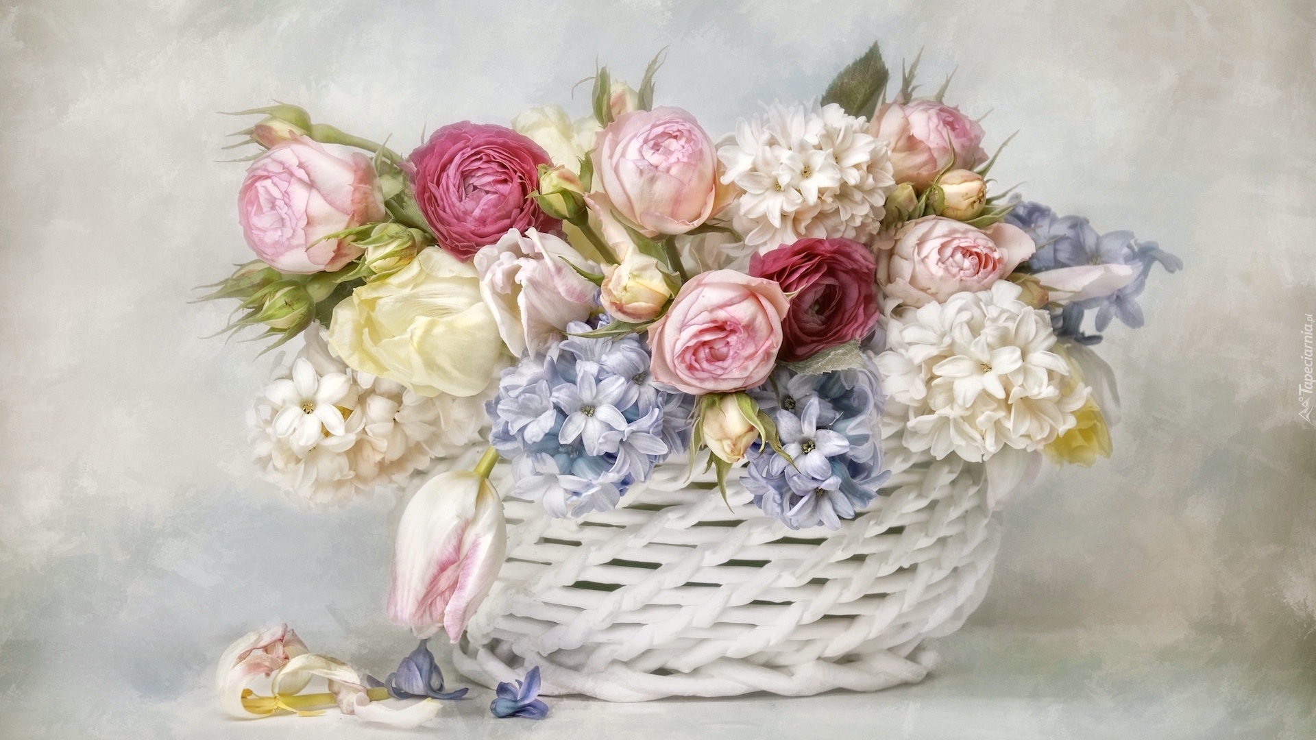 Edytor tapety: Bukiet kwiatów w koszyczku