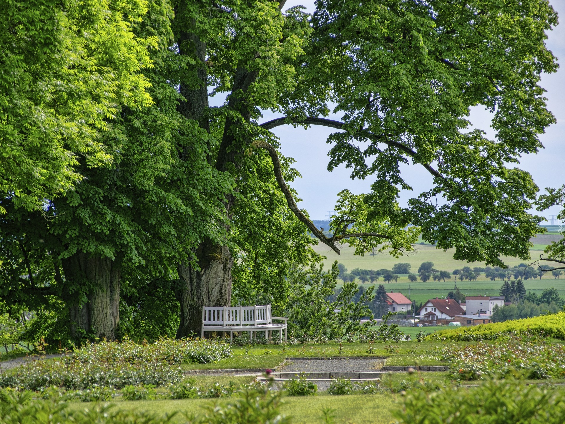 Edytor tapety: Ławka pod rozłożystymi drzewami