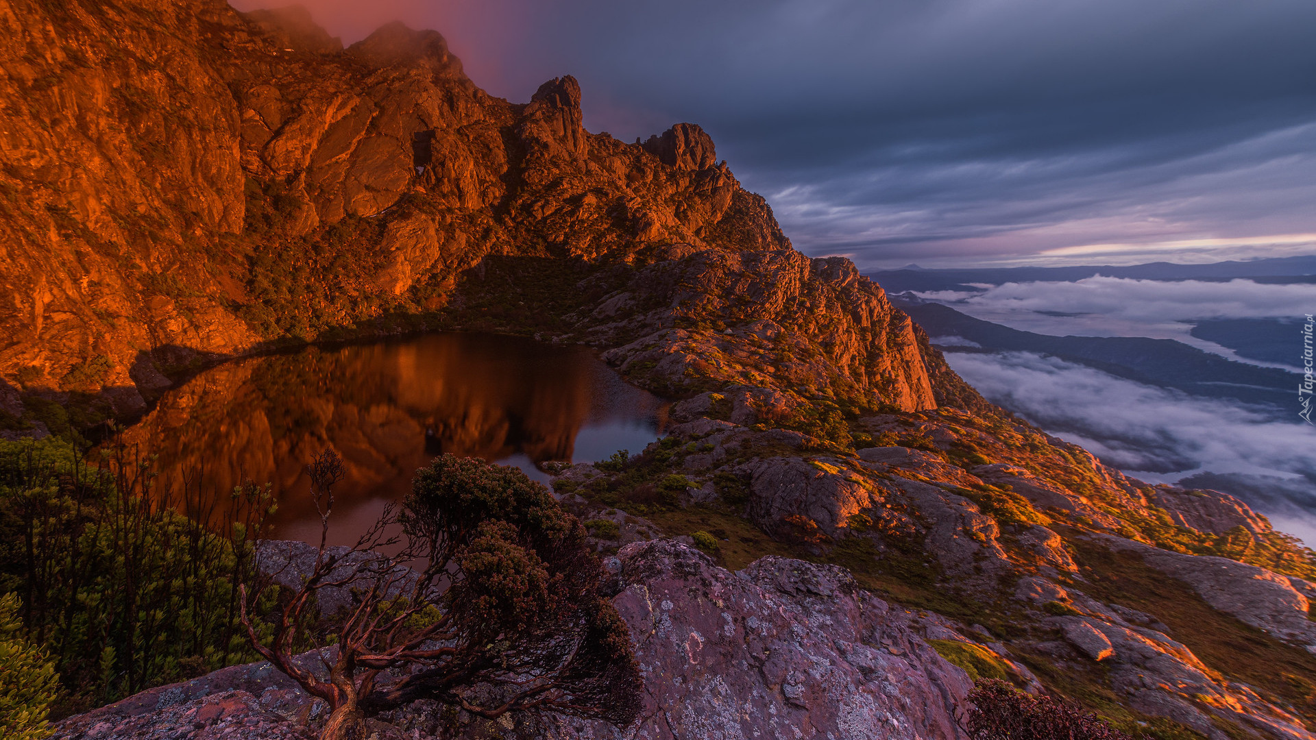 Edytor tapety: Jezioro w rozświetlonych tasmańskich górach