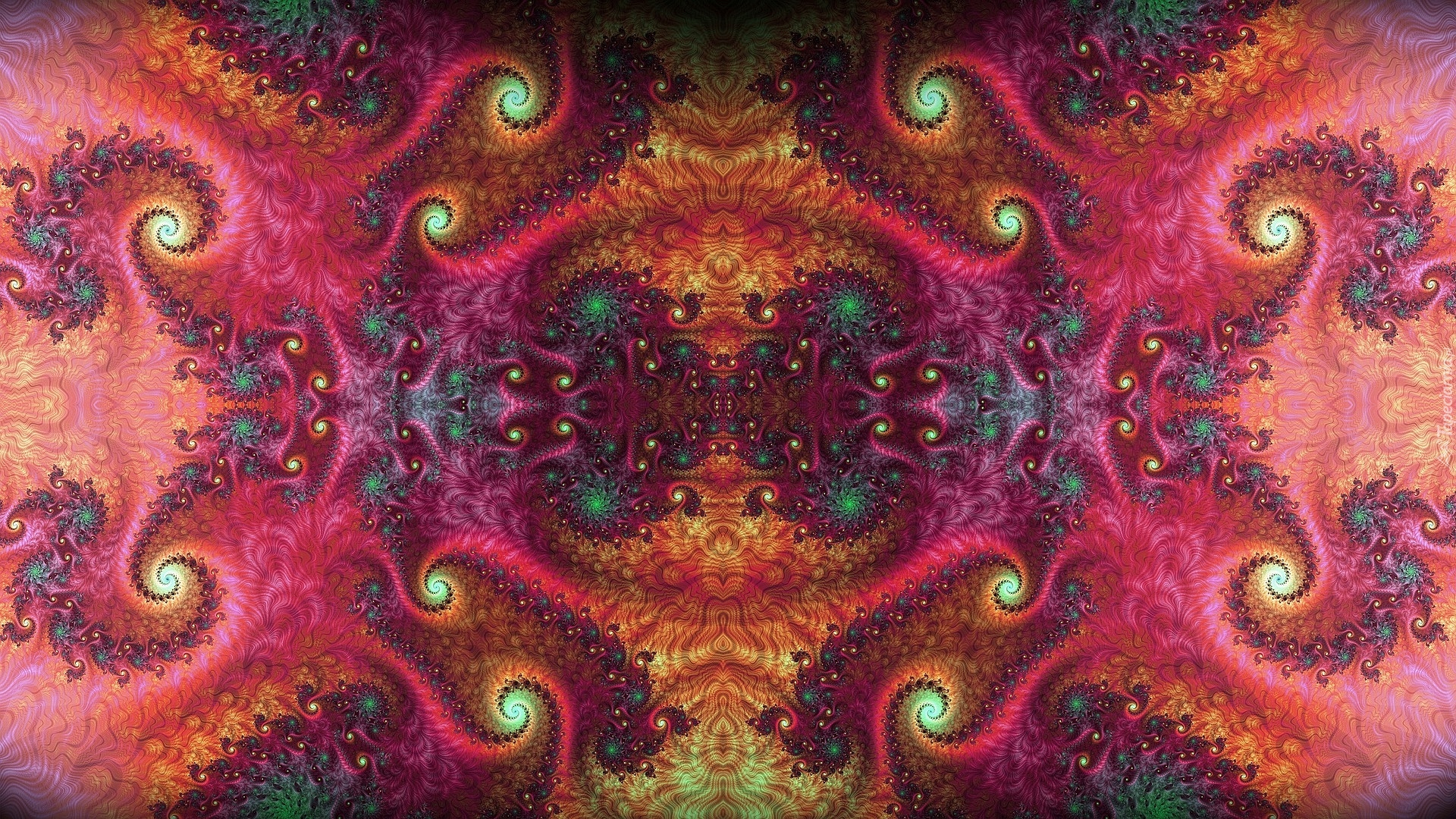 Edytor tapety: Fraktal ze spiralami na różowym tle