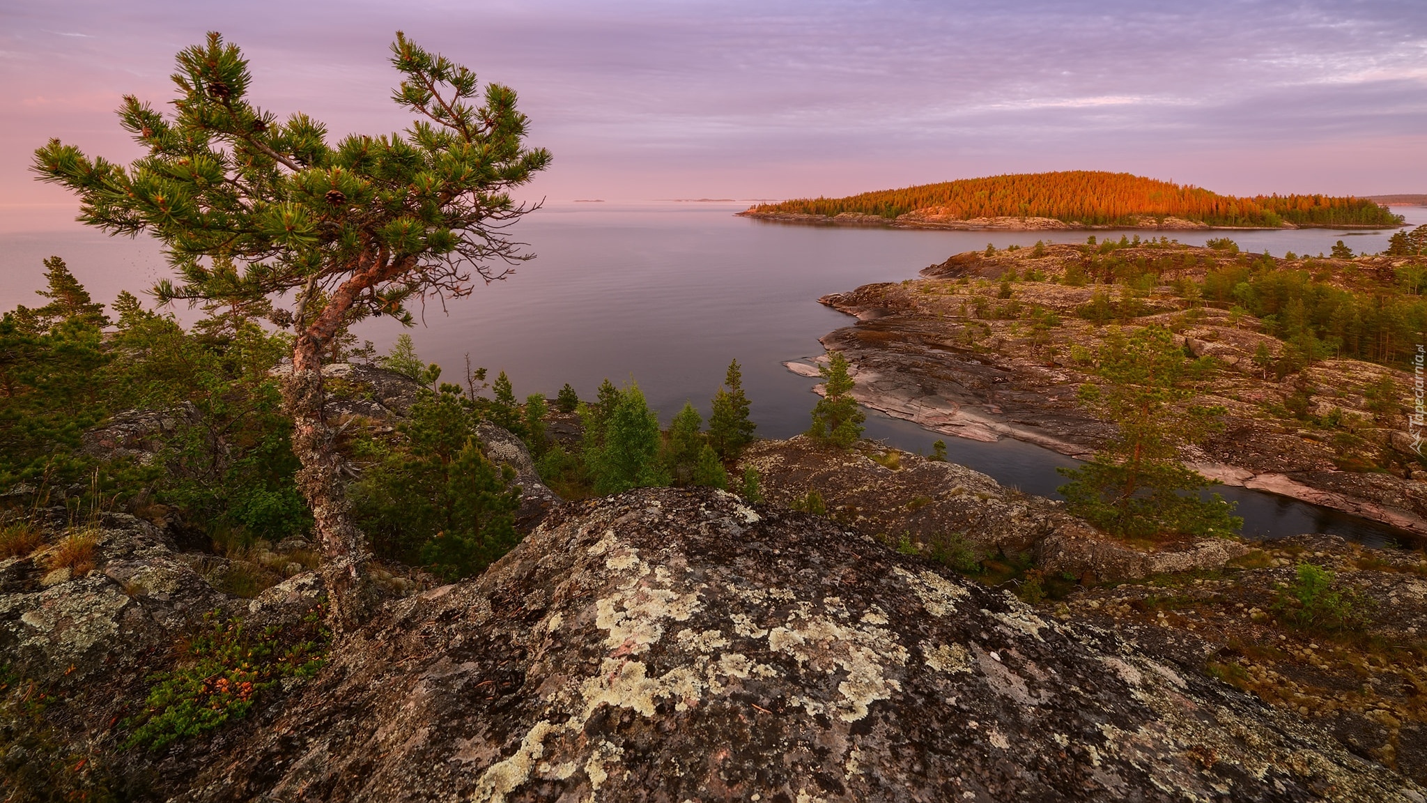 Edytor tapety: Widok ze skał na jezioro Ładoga