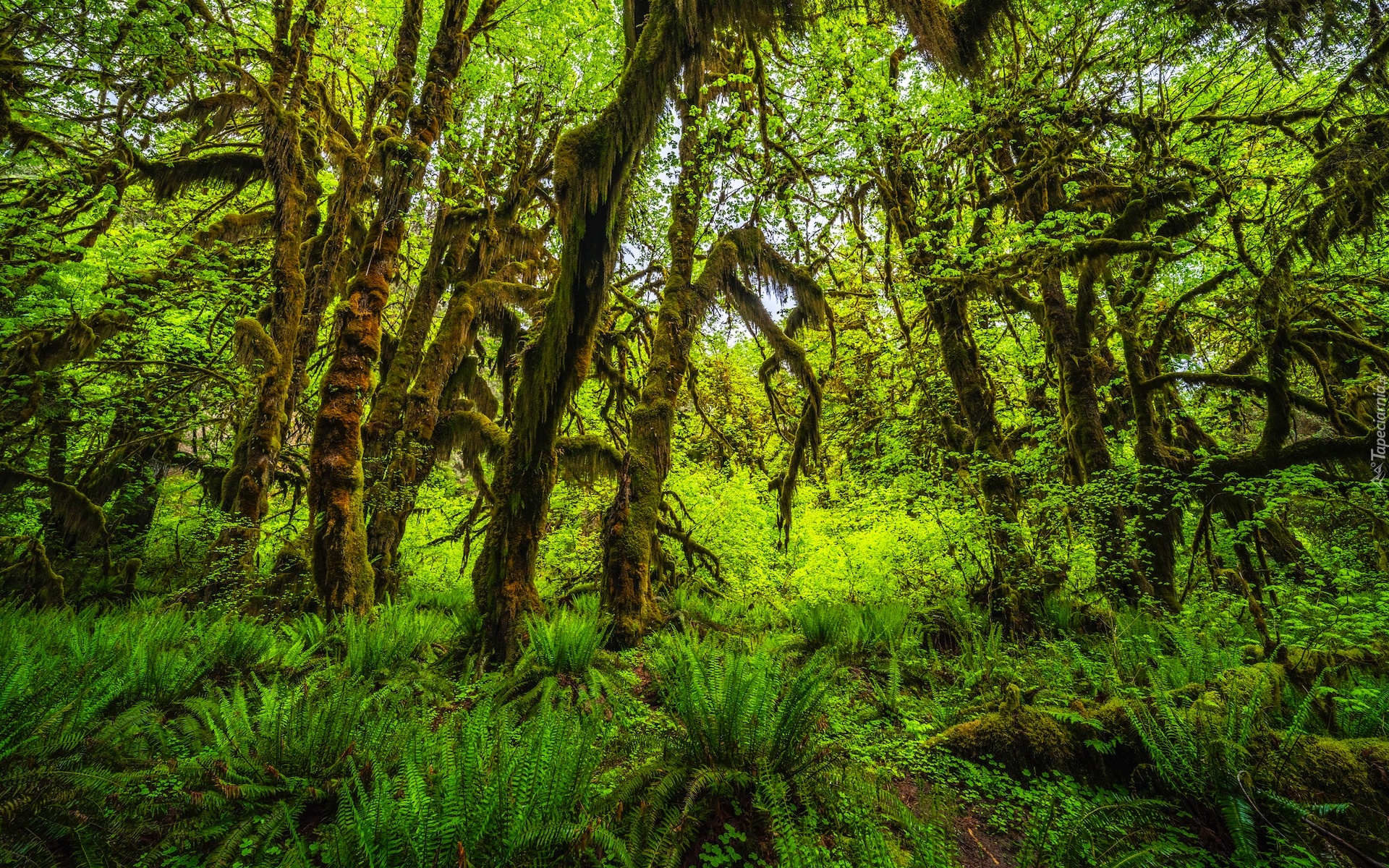 Edytor tapety: Omszałe drzewa i paprocie w Parku Narodowym Olympic