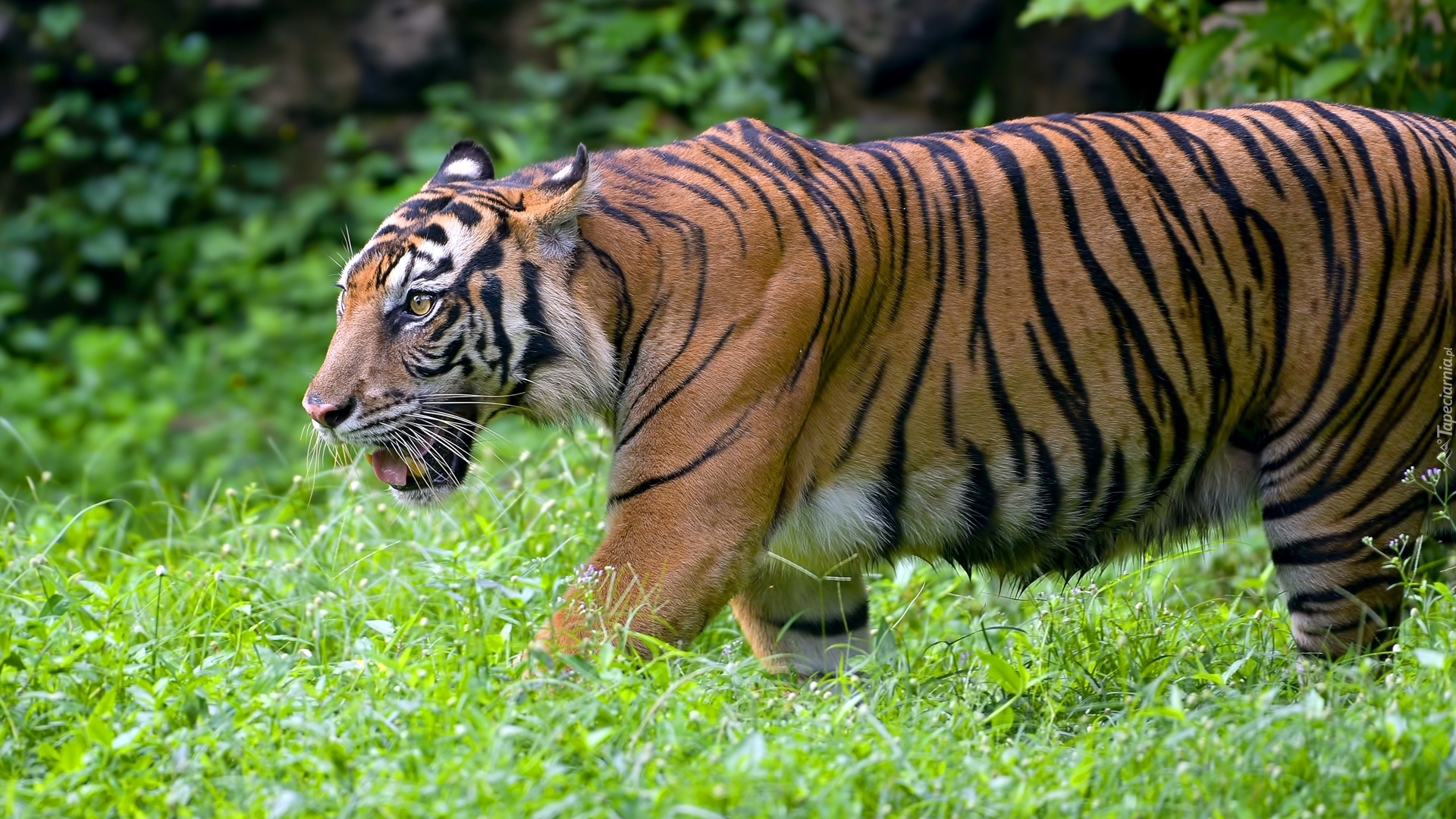 Edytor tapety: Tygrys bengalski idący po trawie
