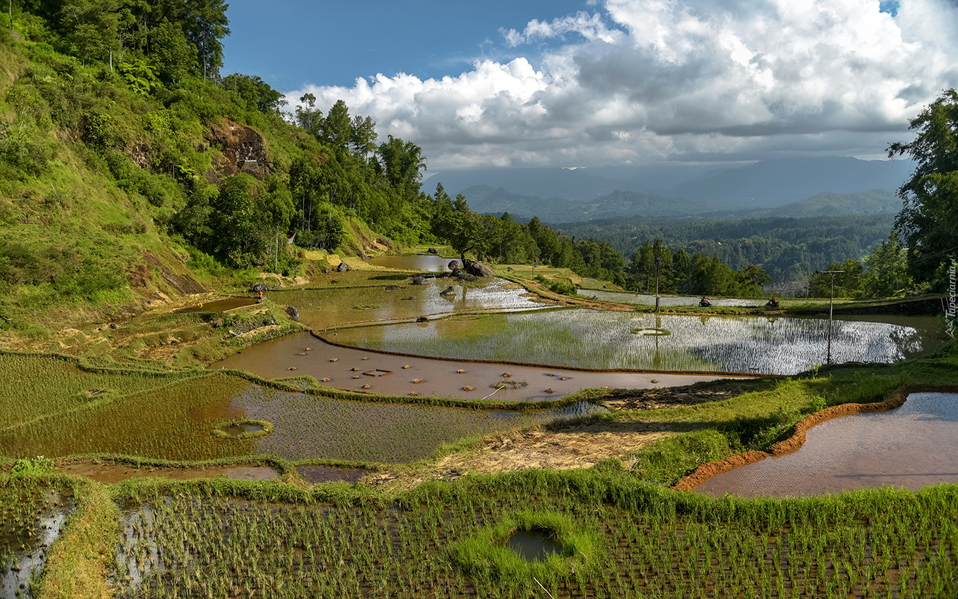 Edytor tapety: Pole ryżowe na wyspie Celebes w Indonezji