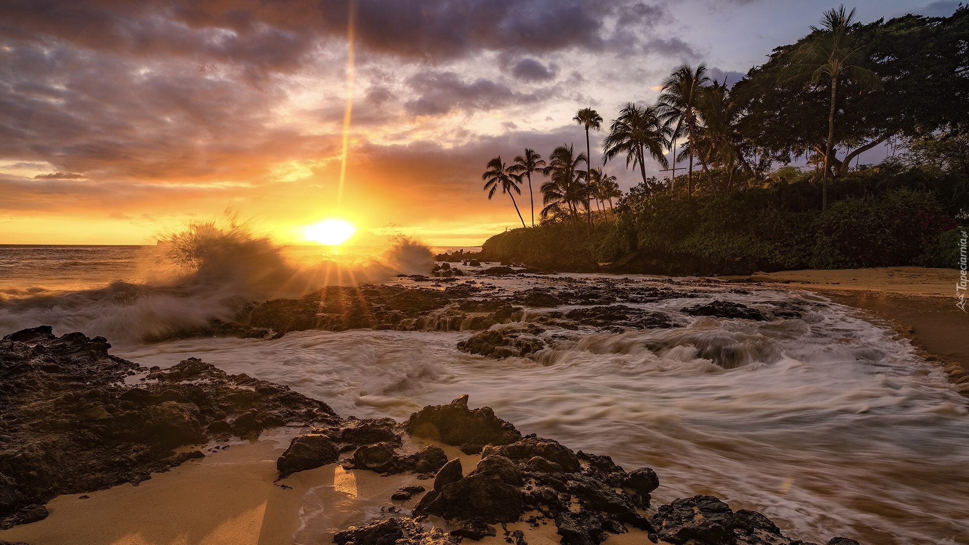 Edytor tapety: Zachód słońca na plaży hawajskiej wyspy Maui