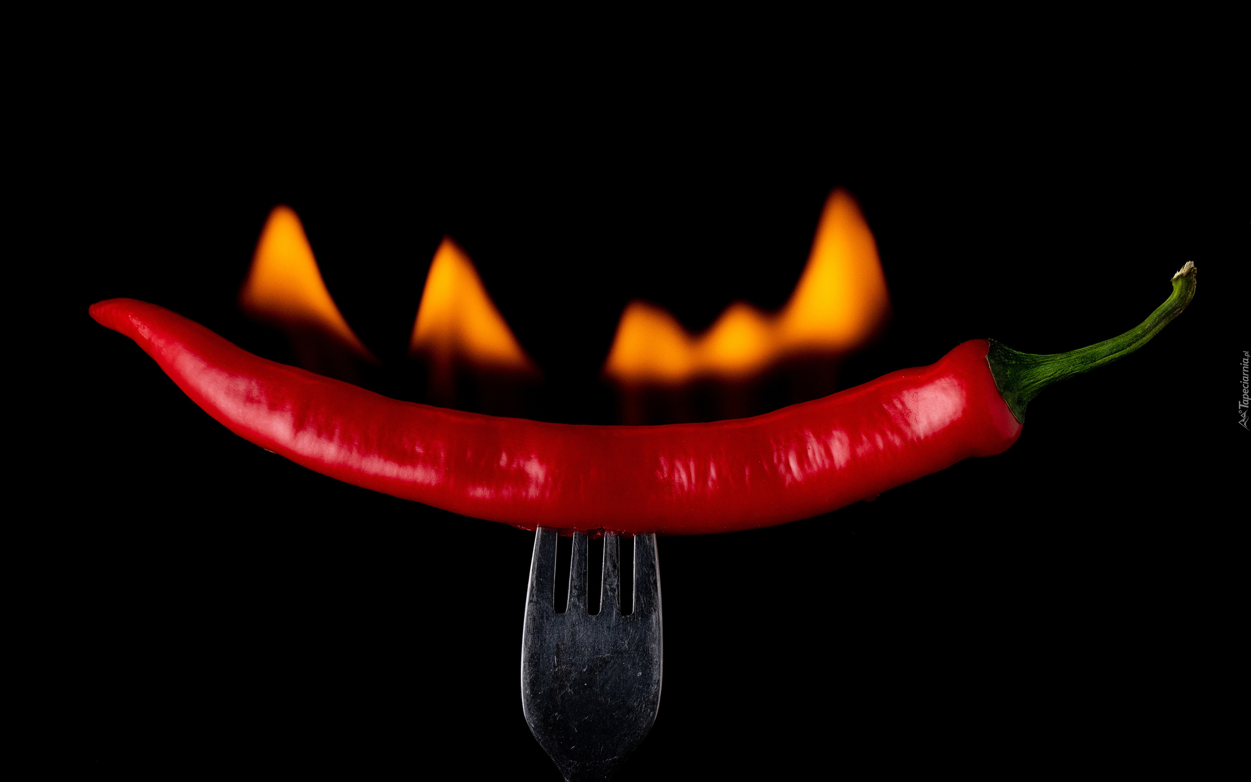 Edytor tapety: Paląca się papryka chili na widelcu