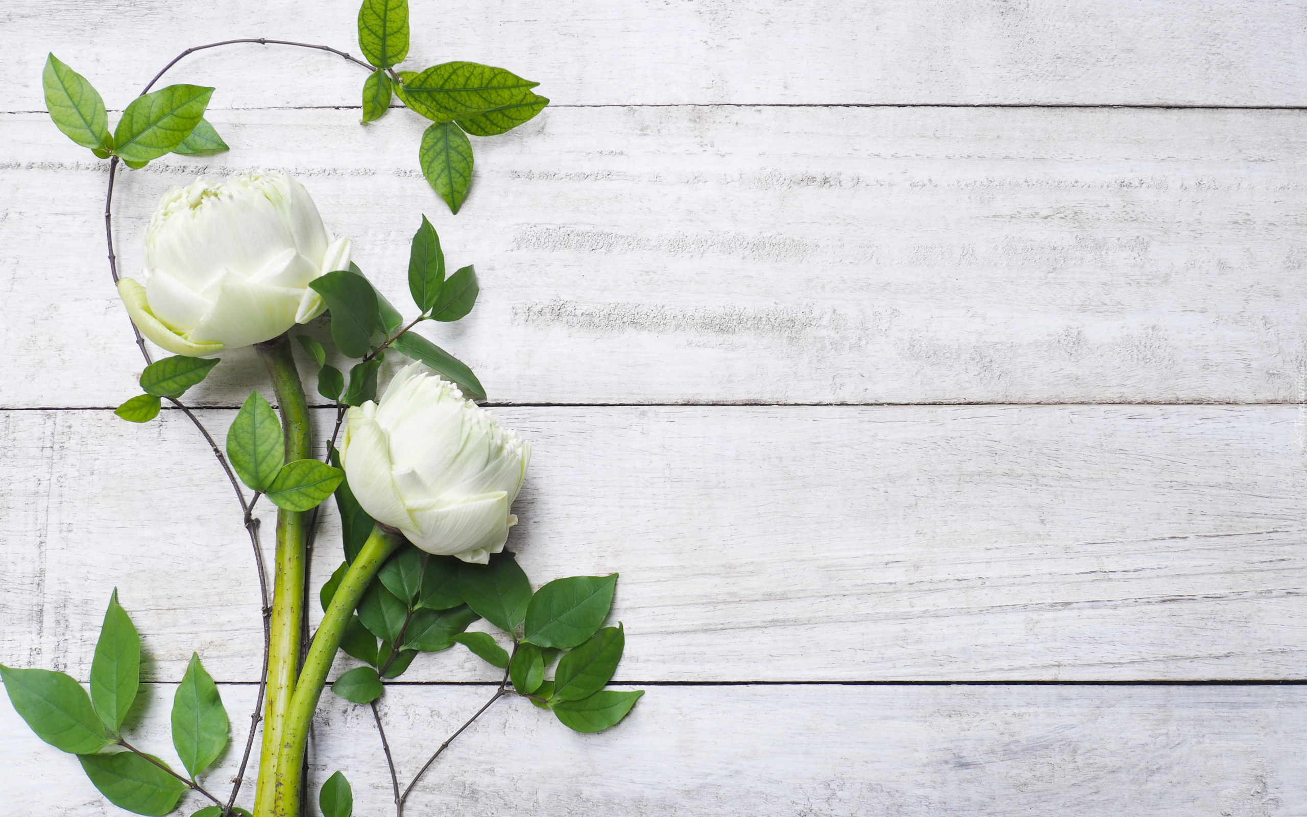 Edytor tapety: Dwa białe lotosy na deskach