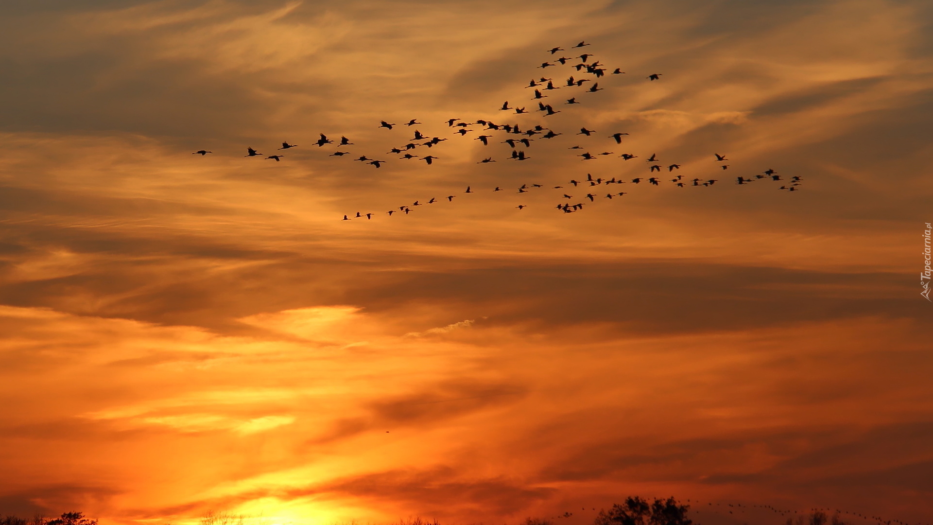 Edytor tapety: Ptaki na niebie o zachodzie słońca