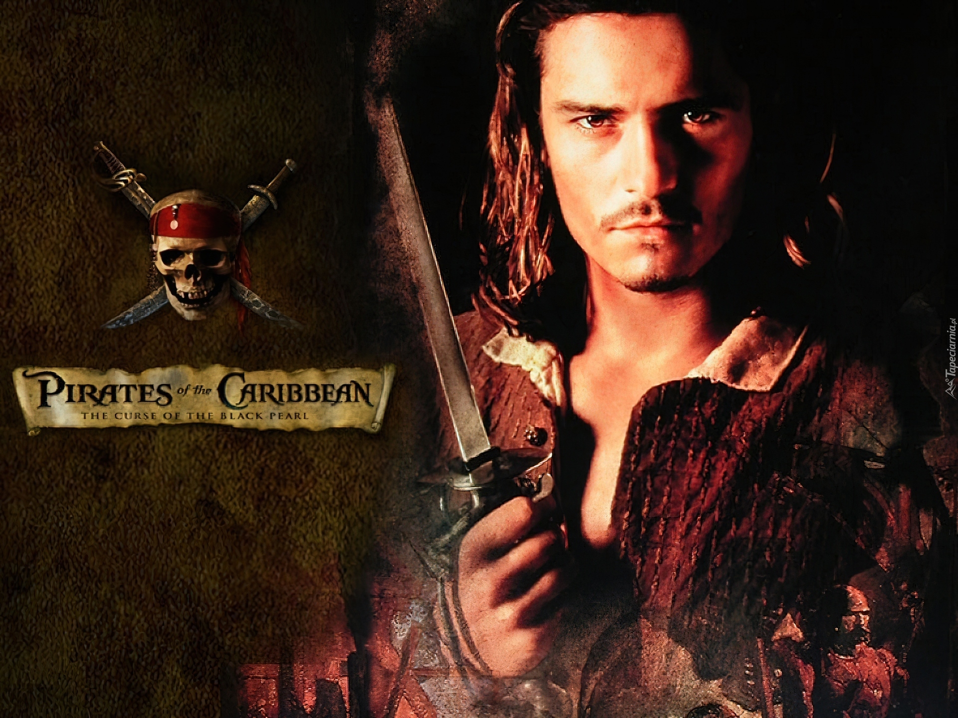Edytor tapety: szabla, czaszka, Piraci Z Karaibów, Orlando Bloom