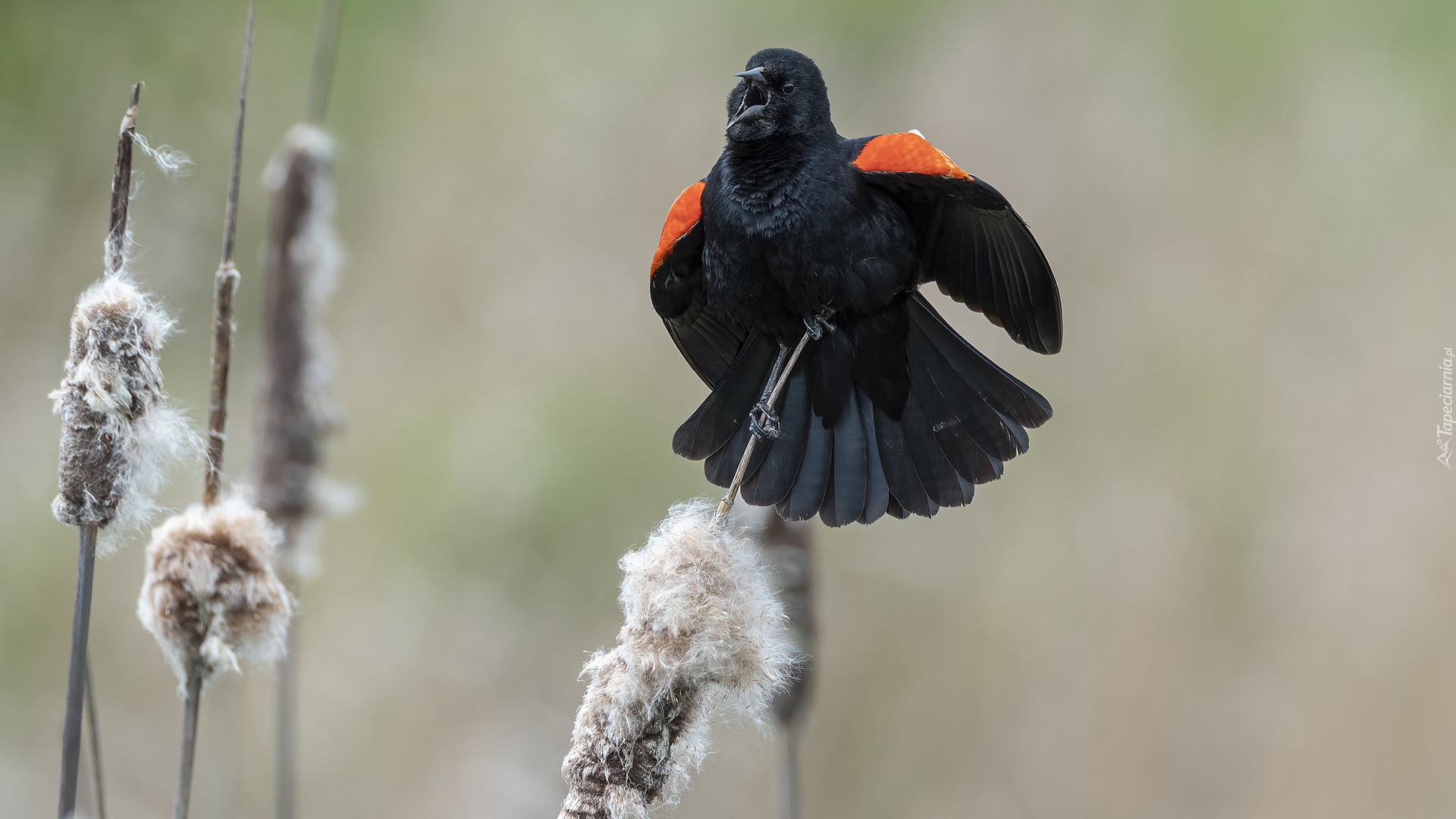 Edytor tapety: Kos czerwonoskrzydły na pałce szerokolistnej