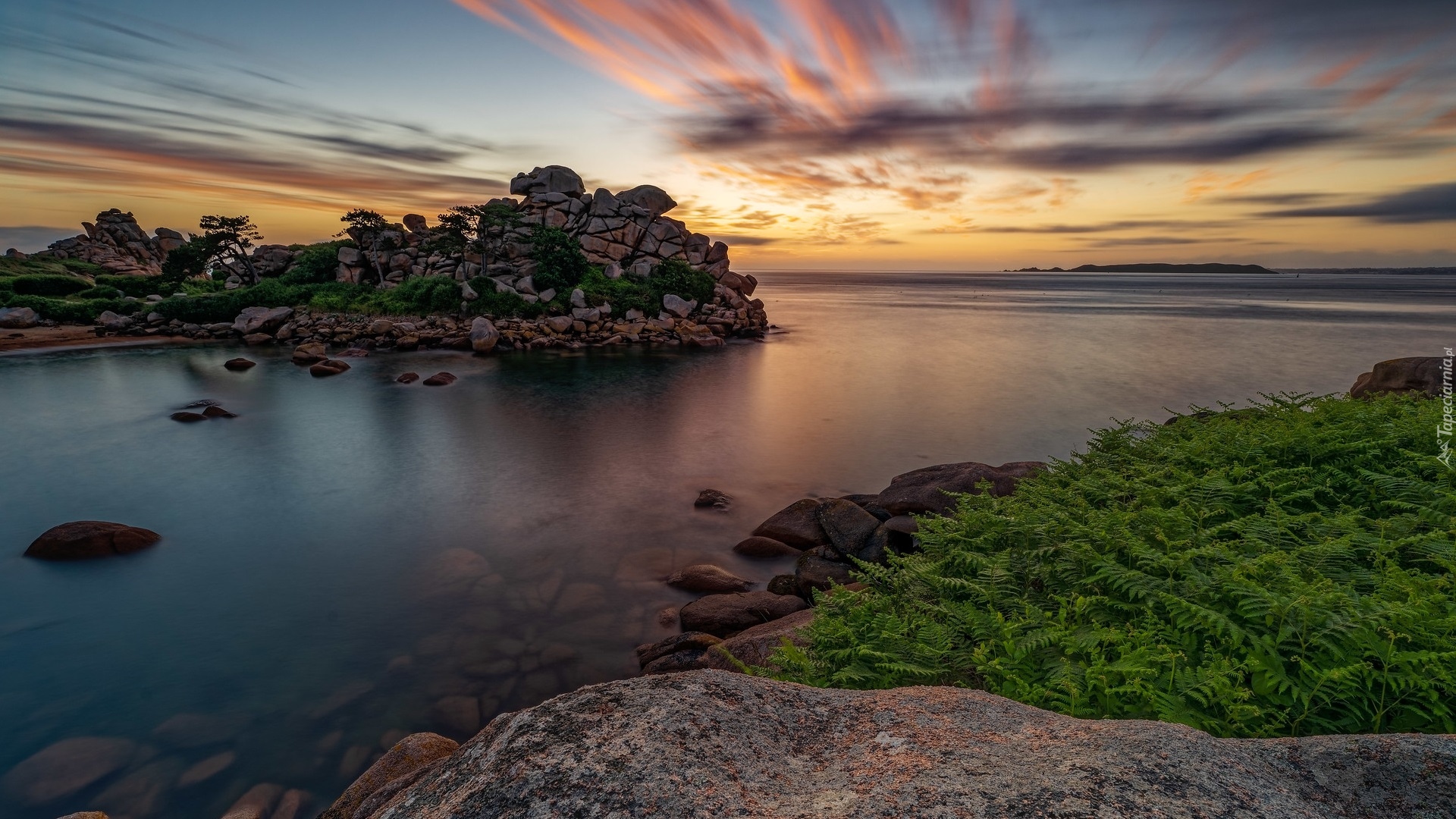 Edytor tapety: Skały i paprocie na wybrzeżu morza