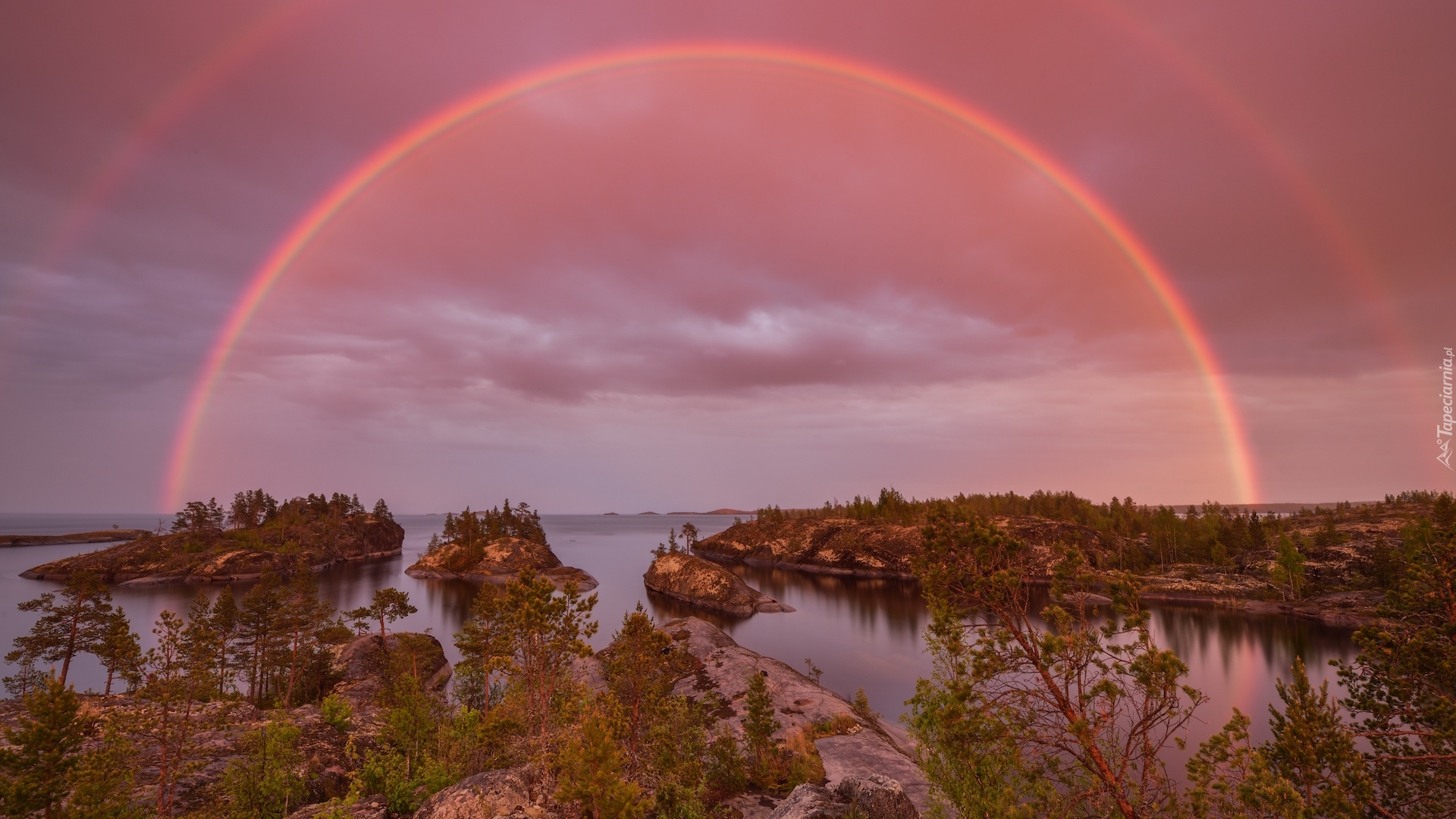Edytor tapety: Tęcza nad wysepkami na jeziorze Ładoga