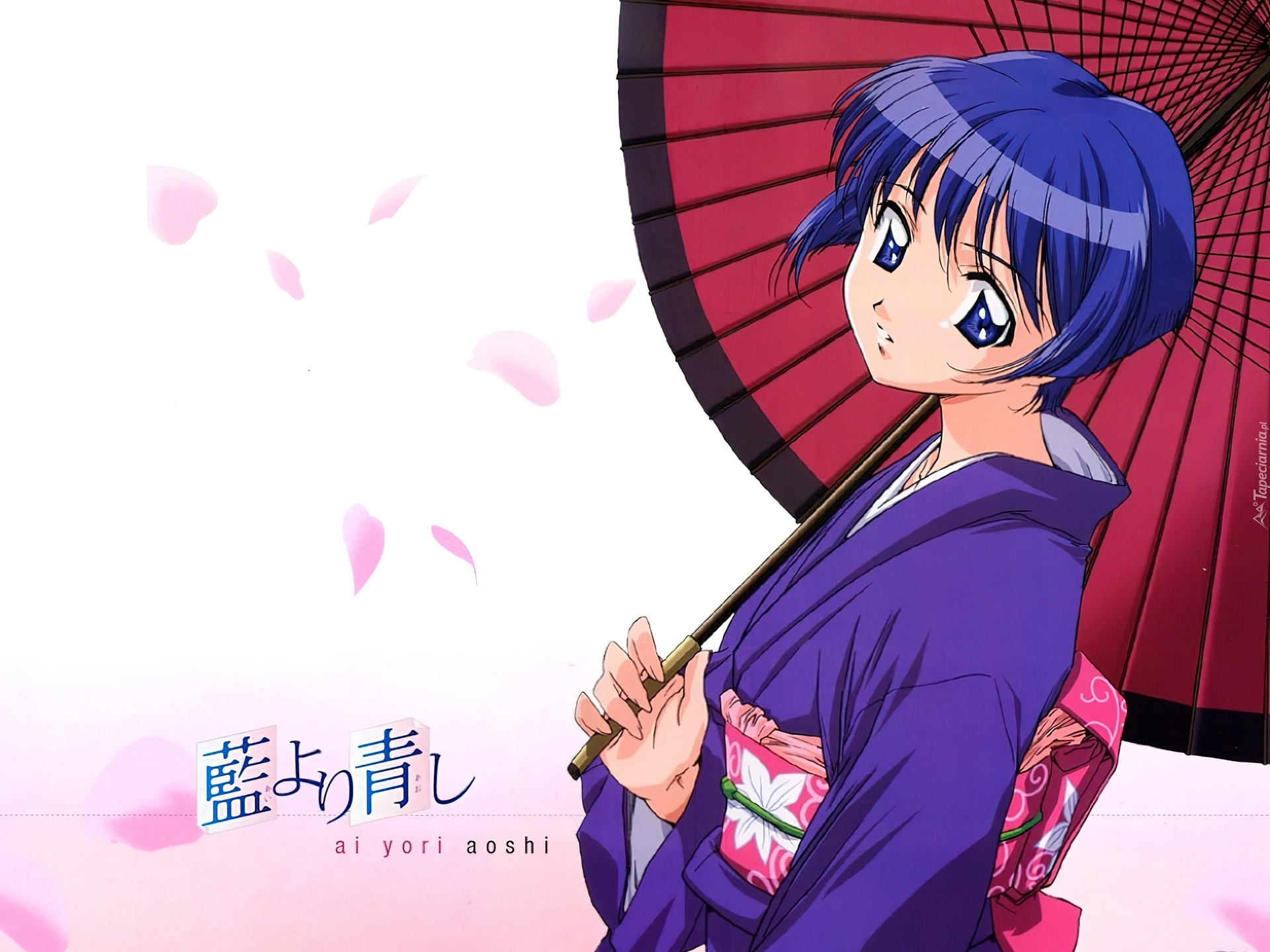 Edytor tapety: Ai Yori Aoshi, dziewczyna, parasol, napisy