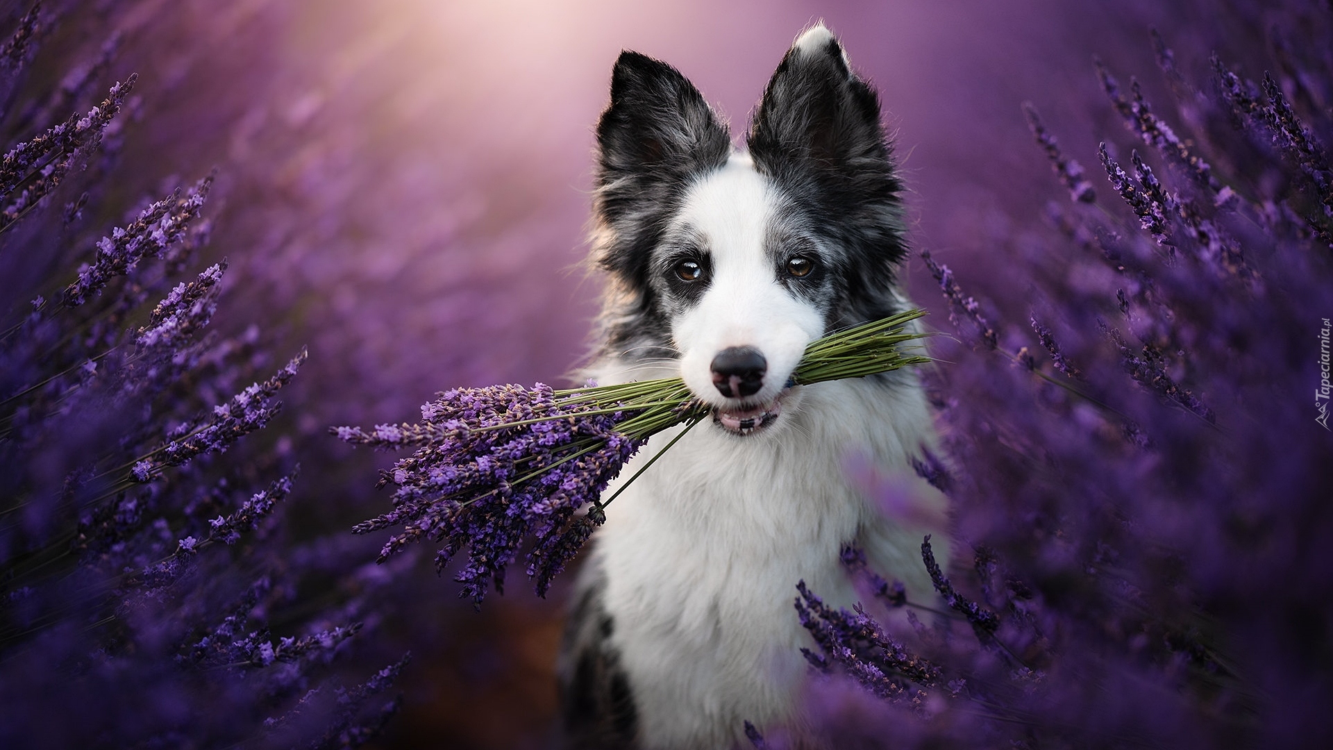 Edytor tapety: Border collie z lawendą