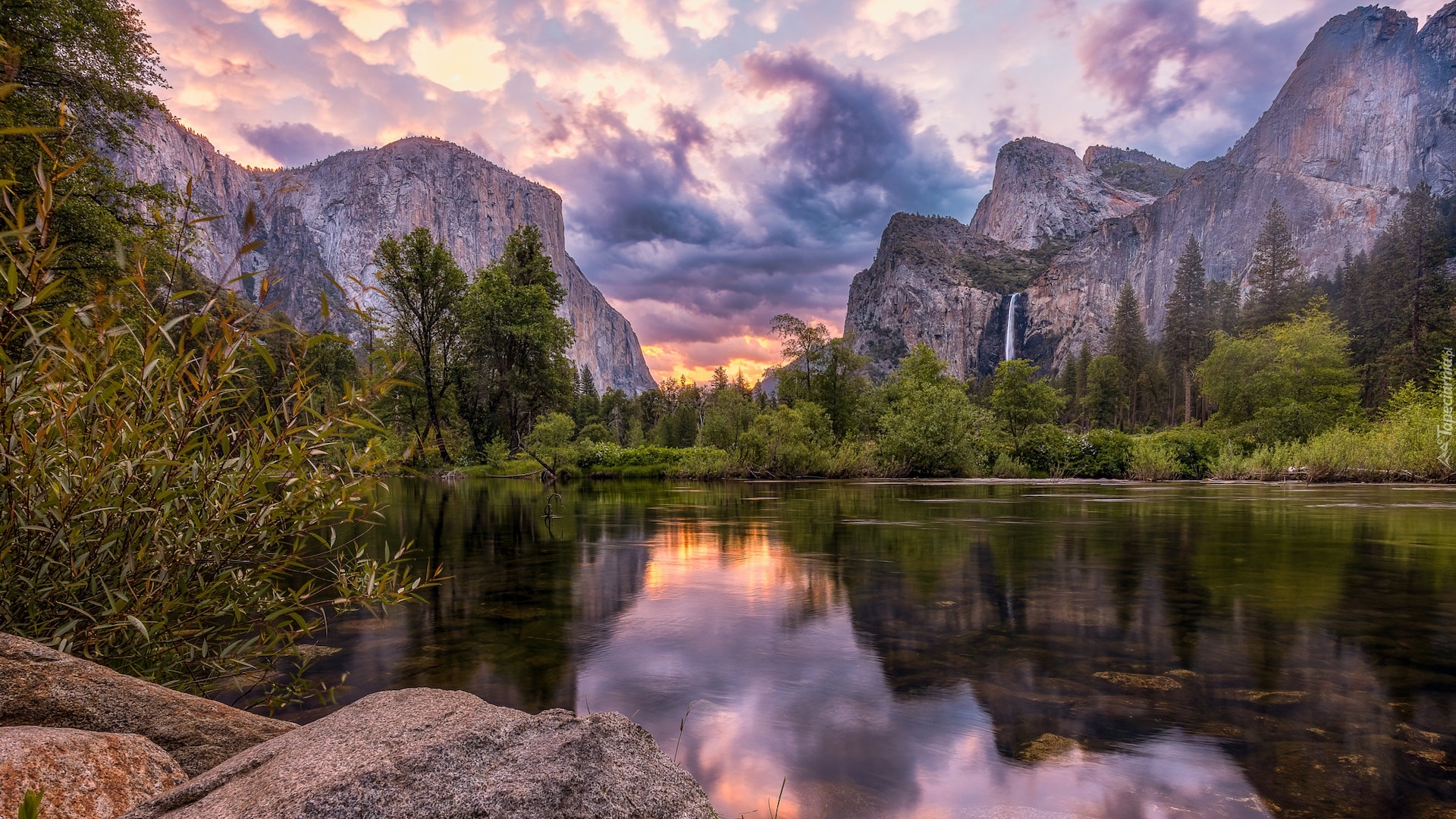 Edytor tapety: Widok znad rzeki Merced River na góry