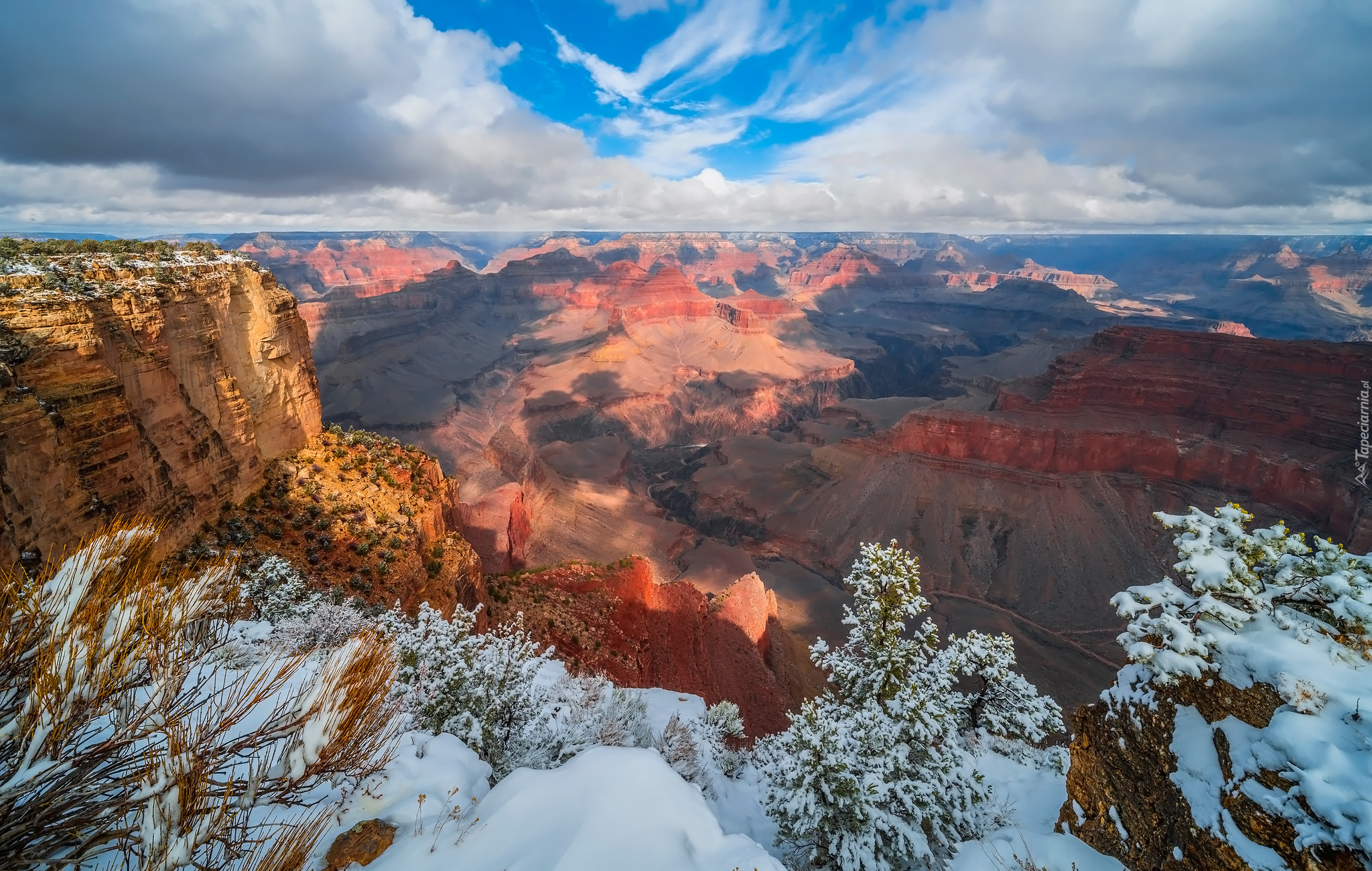 Edytor tapety: Śnieg na skałach w Parku Narodowym Wielkiego Kanionu