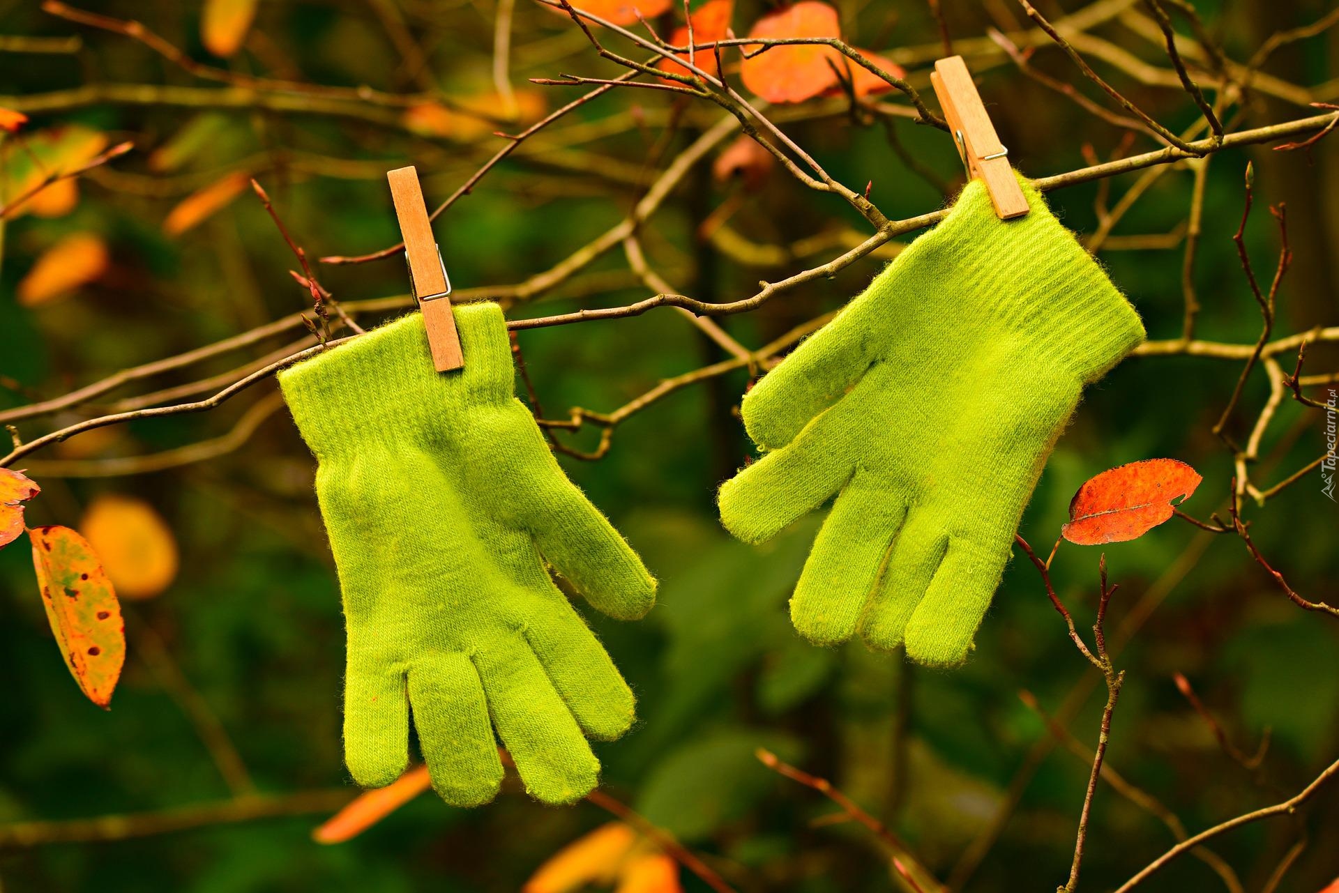 Edytor tapety: Dwie zielone rękawiczki zawieszone na gałązkach