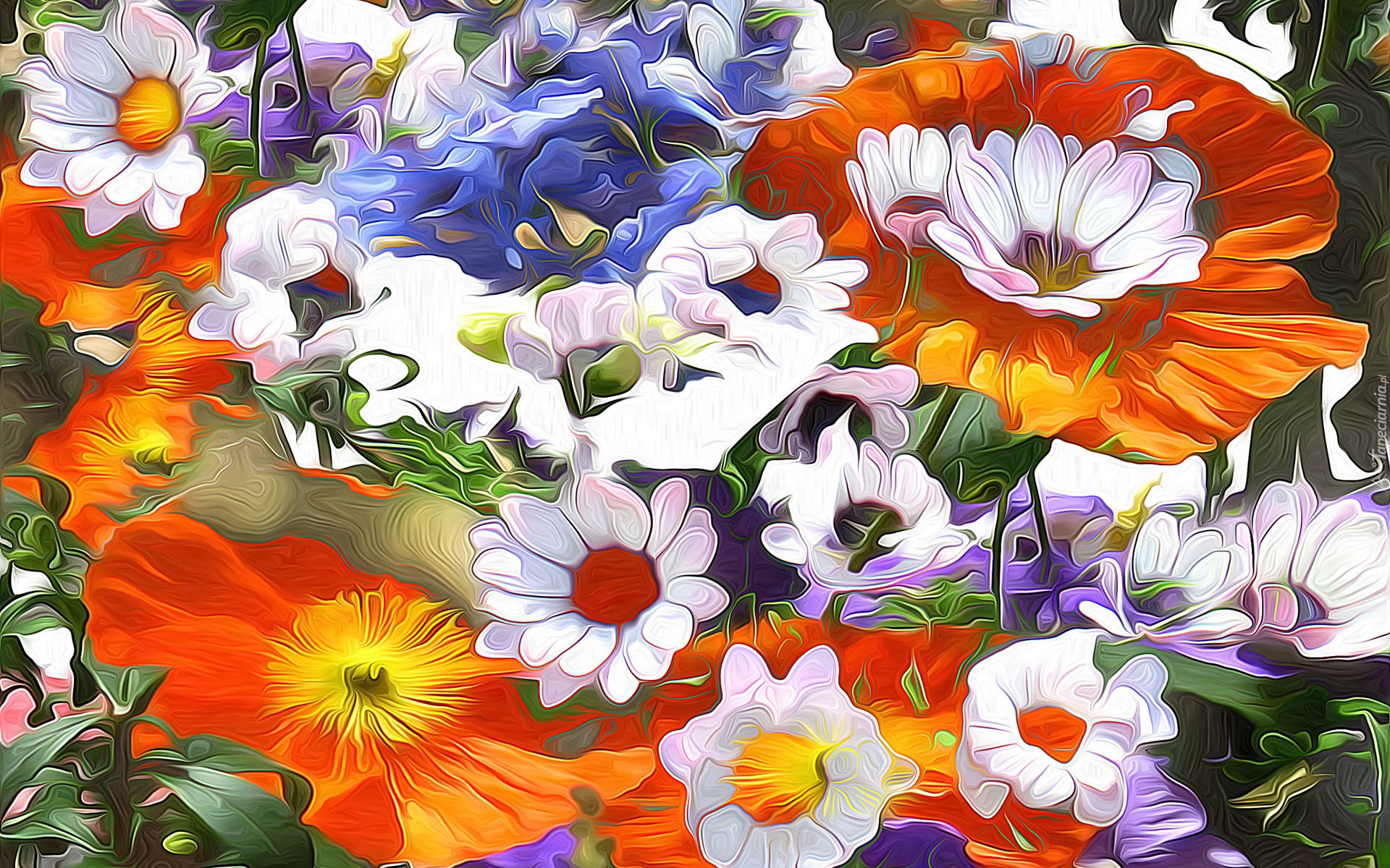 Edytor tapety: Kwiaty kolorowe w grafice fractalius