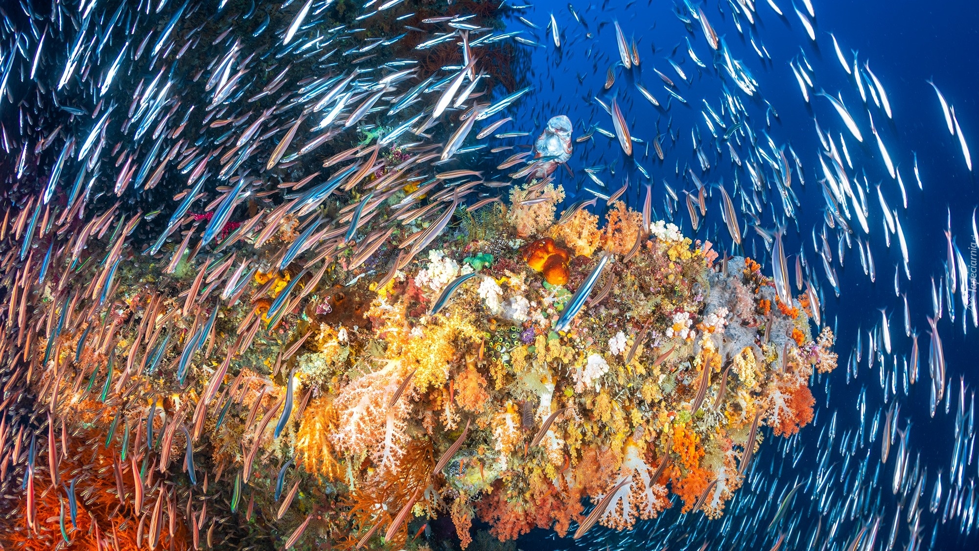 Edytor tapety: Koralowce i ławica ryb