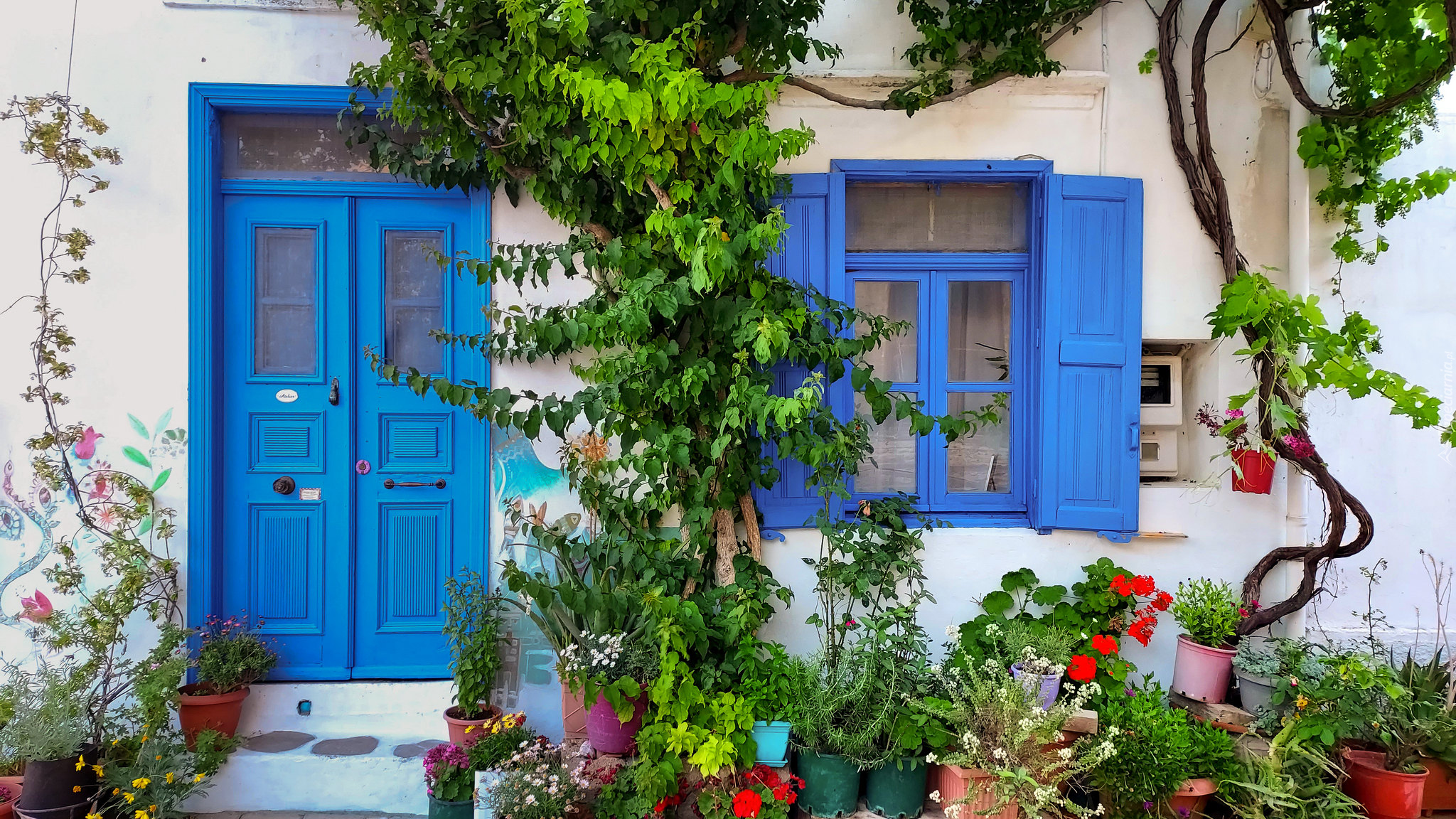 Edytor tapety: Kwiaty przed domem