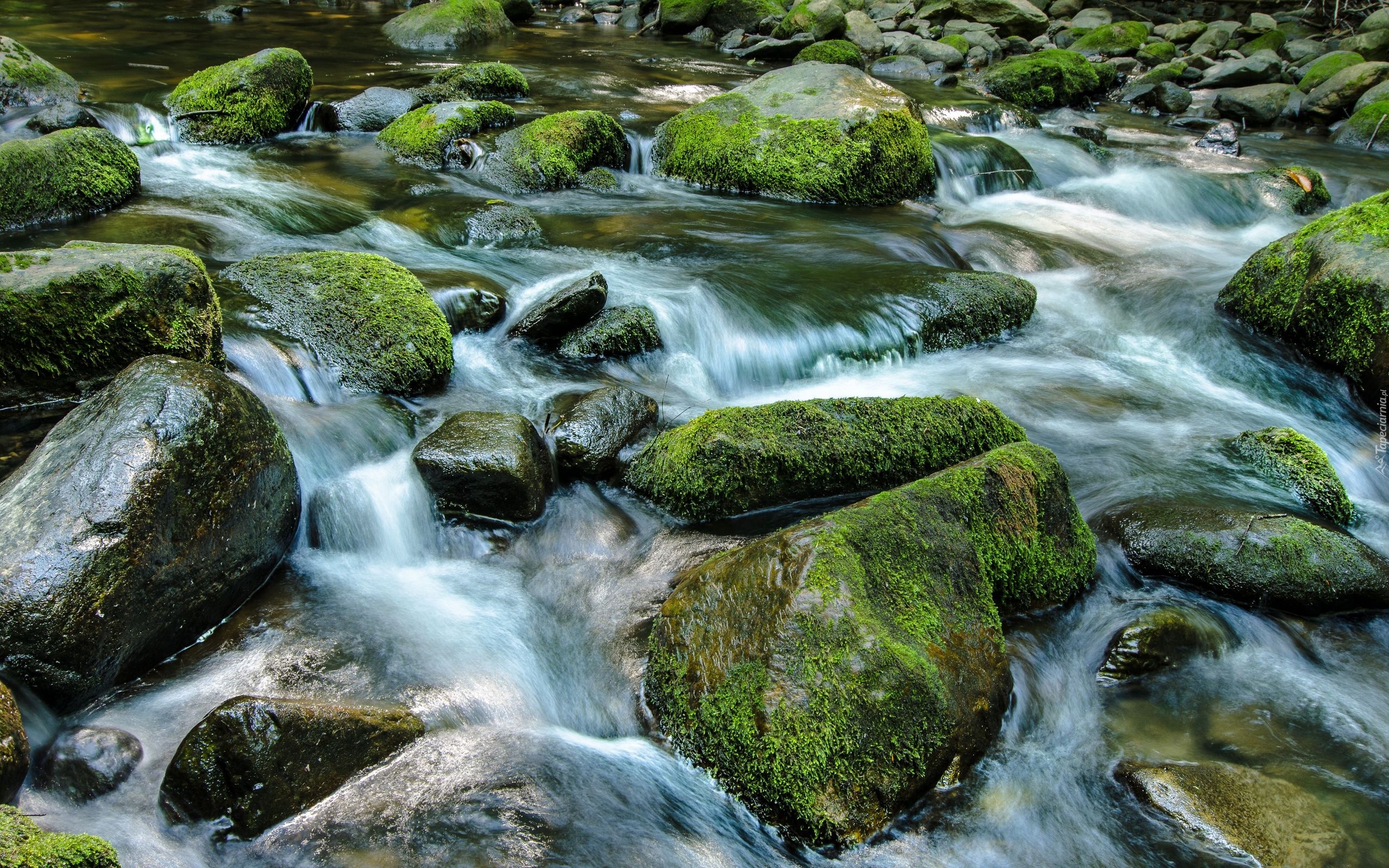 Edytor tapety: Omszałe kamienie w rwącym strumieniu