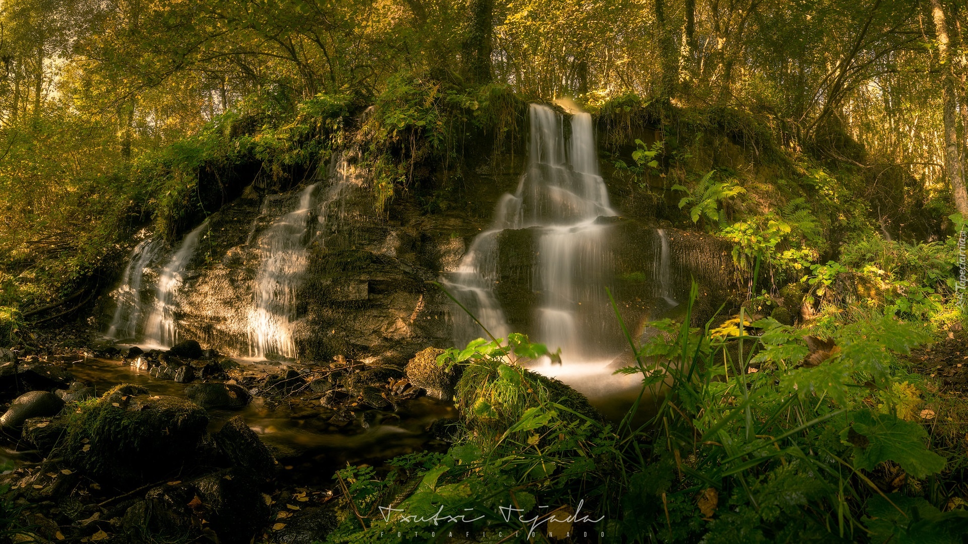 Edytor tapety: Rośliny i drzewa przy wodospadzie