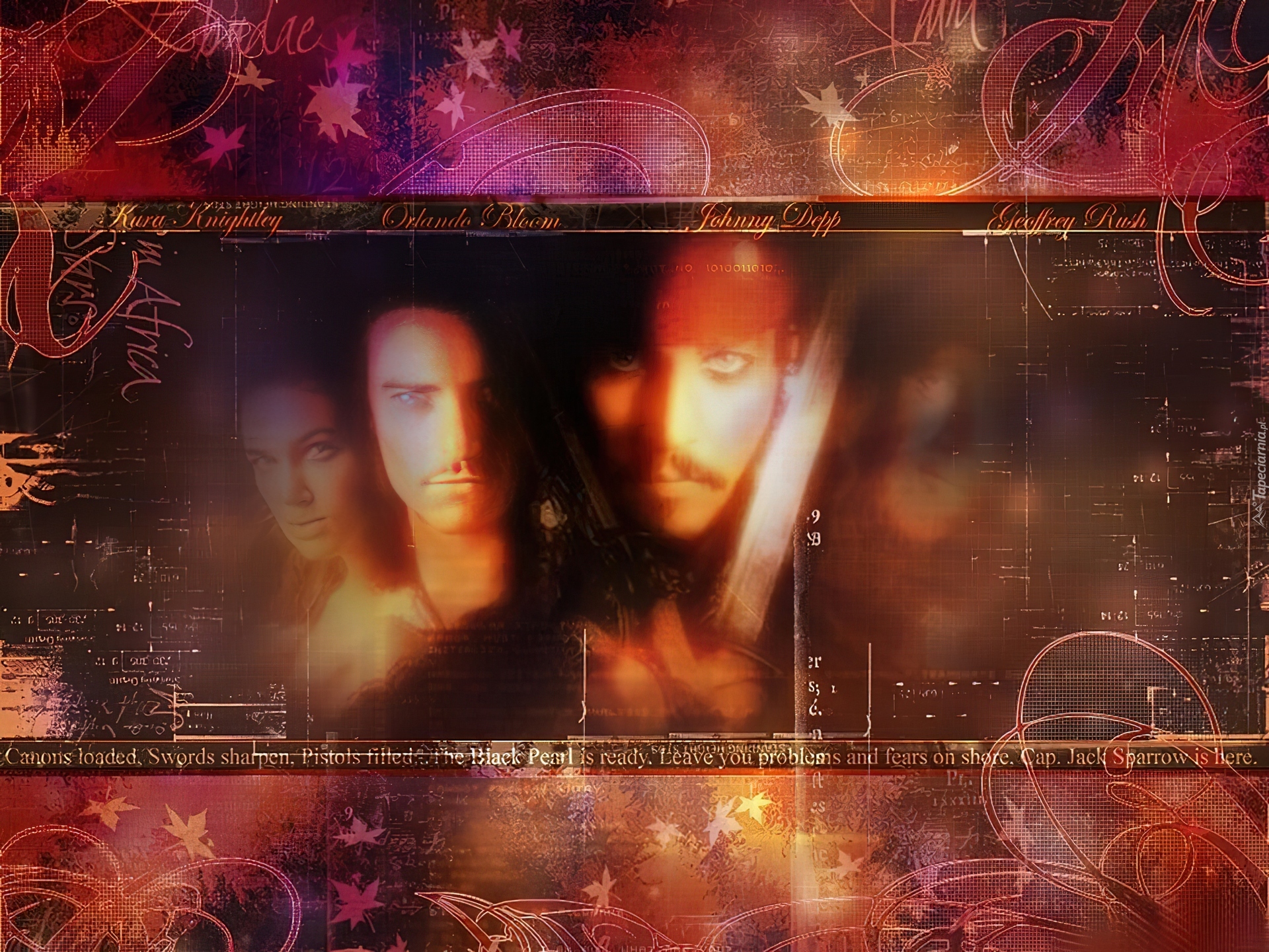 Edytor tapety: Piraci Z Karaibów, twarze, szabla, napisy