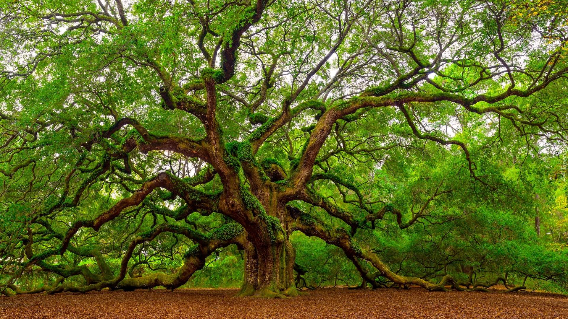 Edytor tapety: Omszałe rozłożyste drzewo