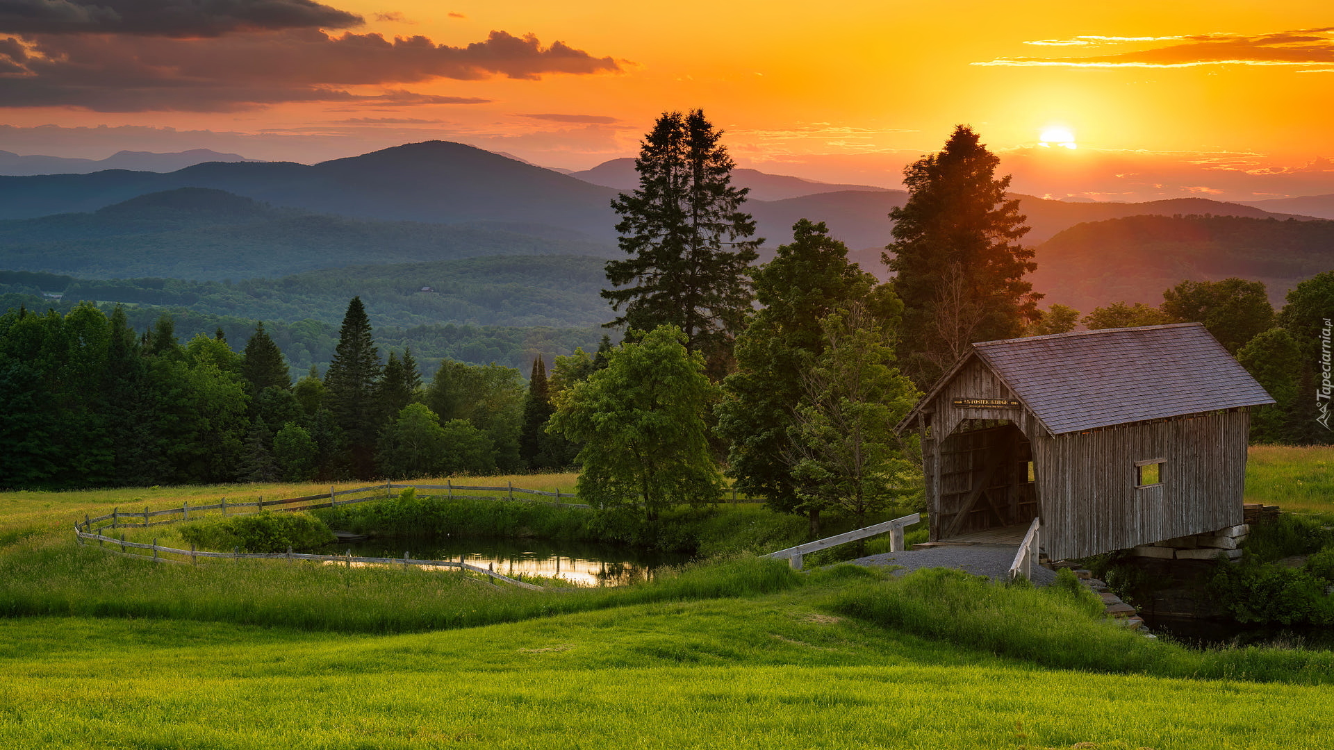 Edytor tapety: Zadaszony most AM Foster Covered Bridge w Cabot