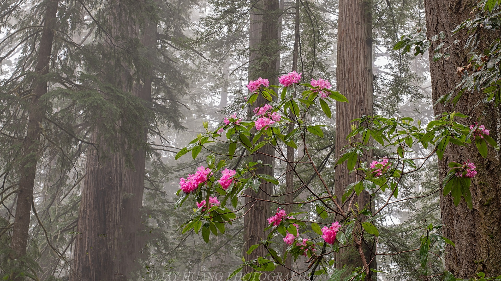 Edytor tapety: Różanecznik na tle sekwoi w Parku Narodowym Redwood