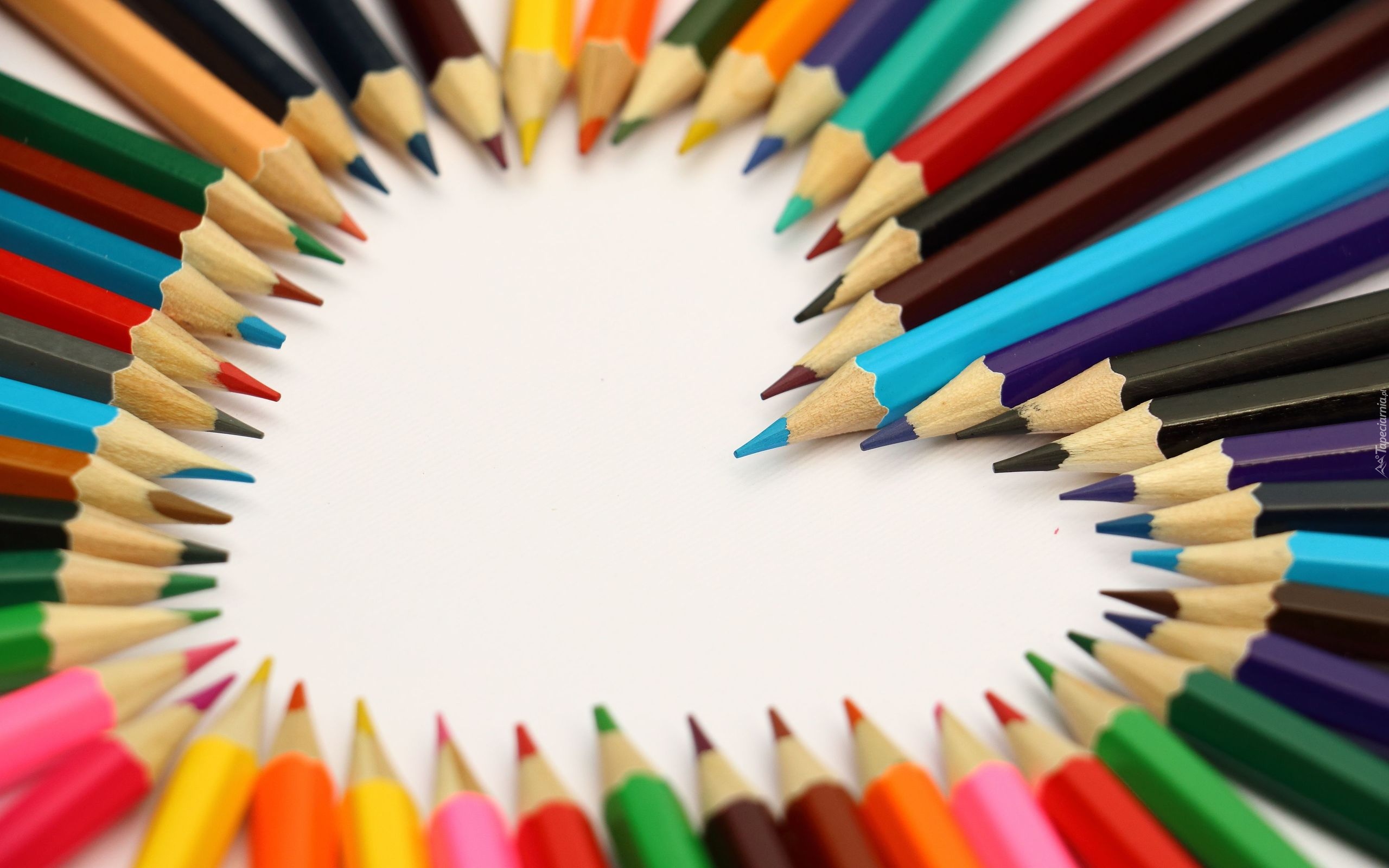 Edytor tapety: Kolorowe kredki ułożone w kształcie serca