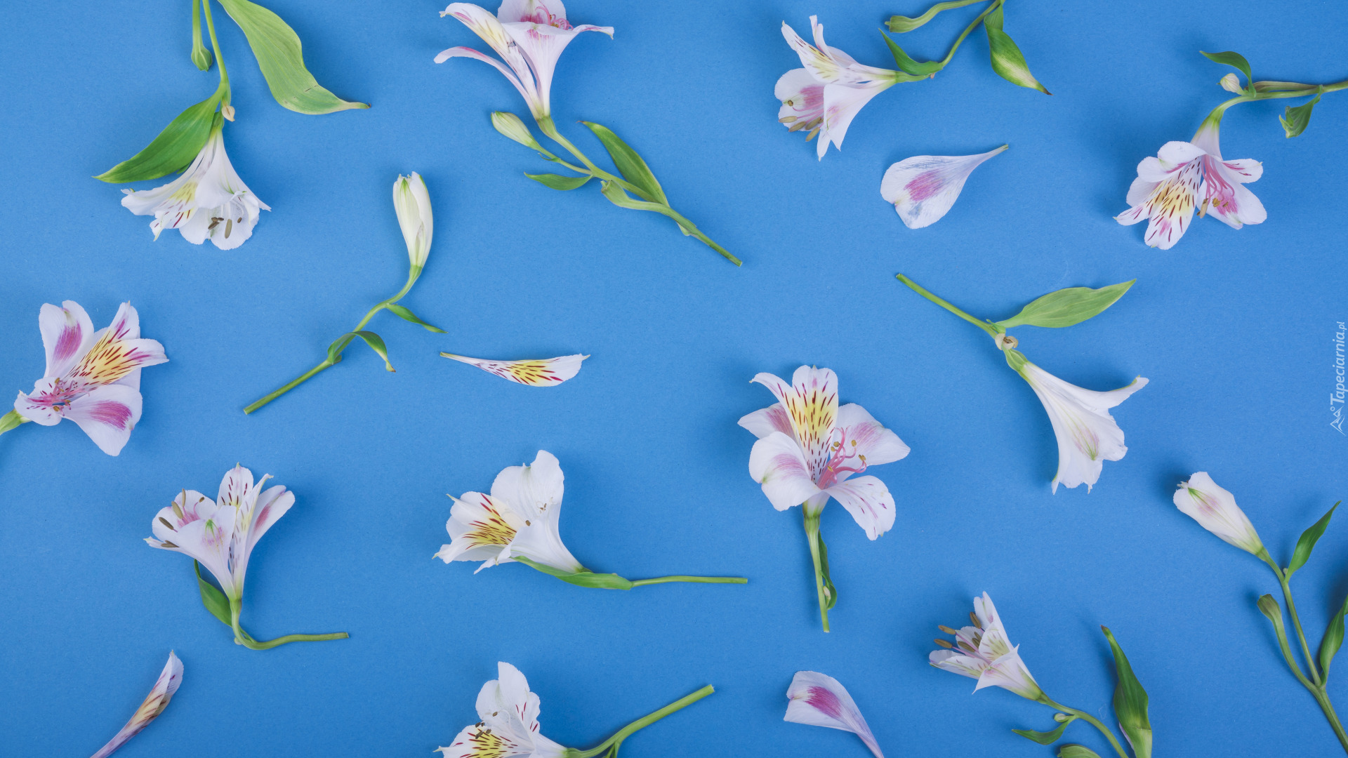 Edytor tapety: Alstremerie na niebieskim tle
