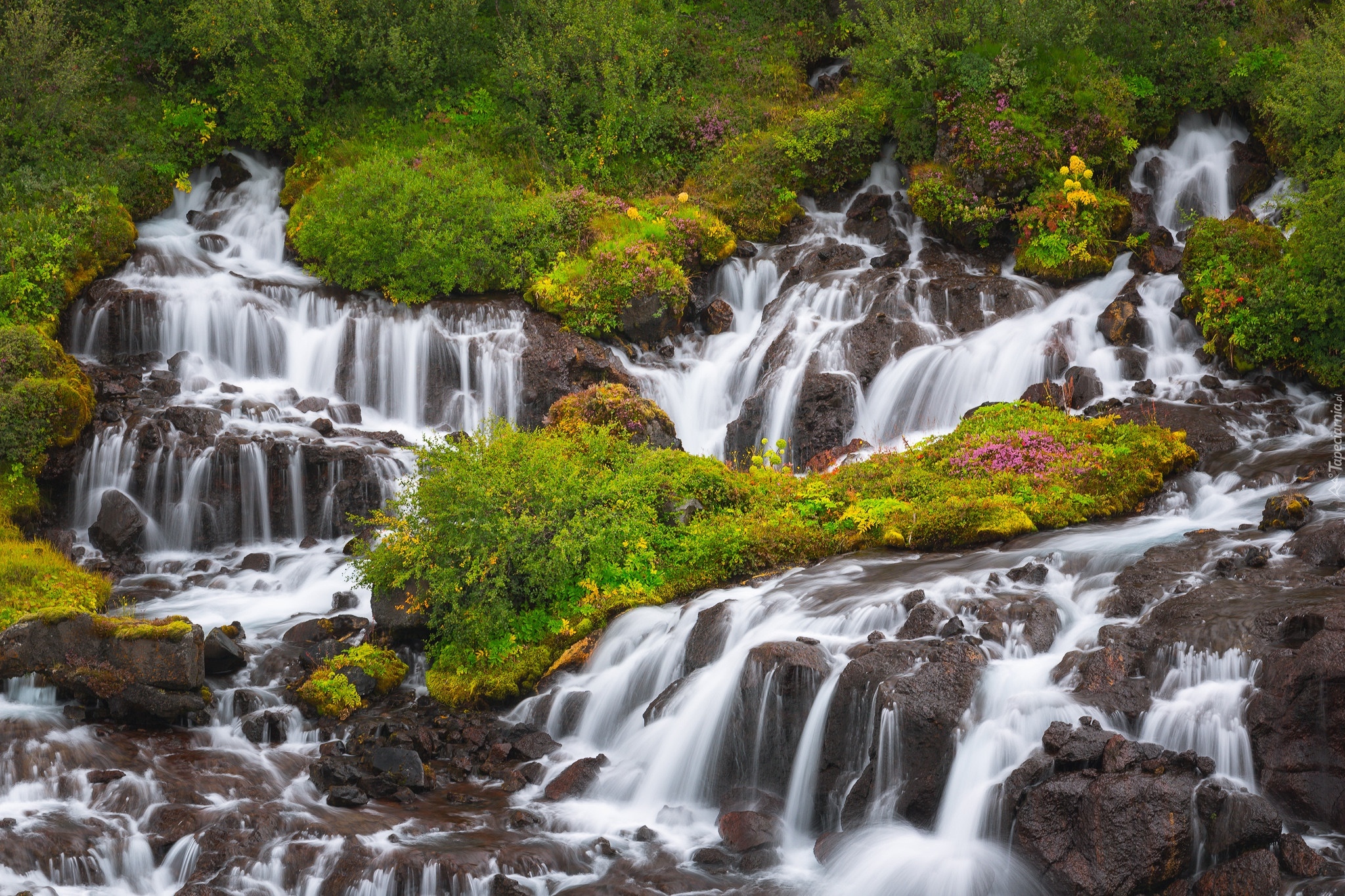 Edytor tapety: Wodospady Hraunfossar w Islandii