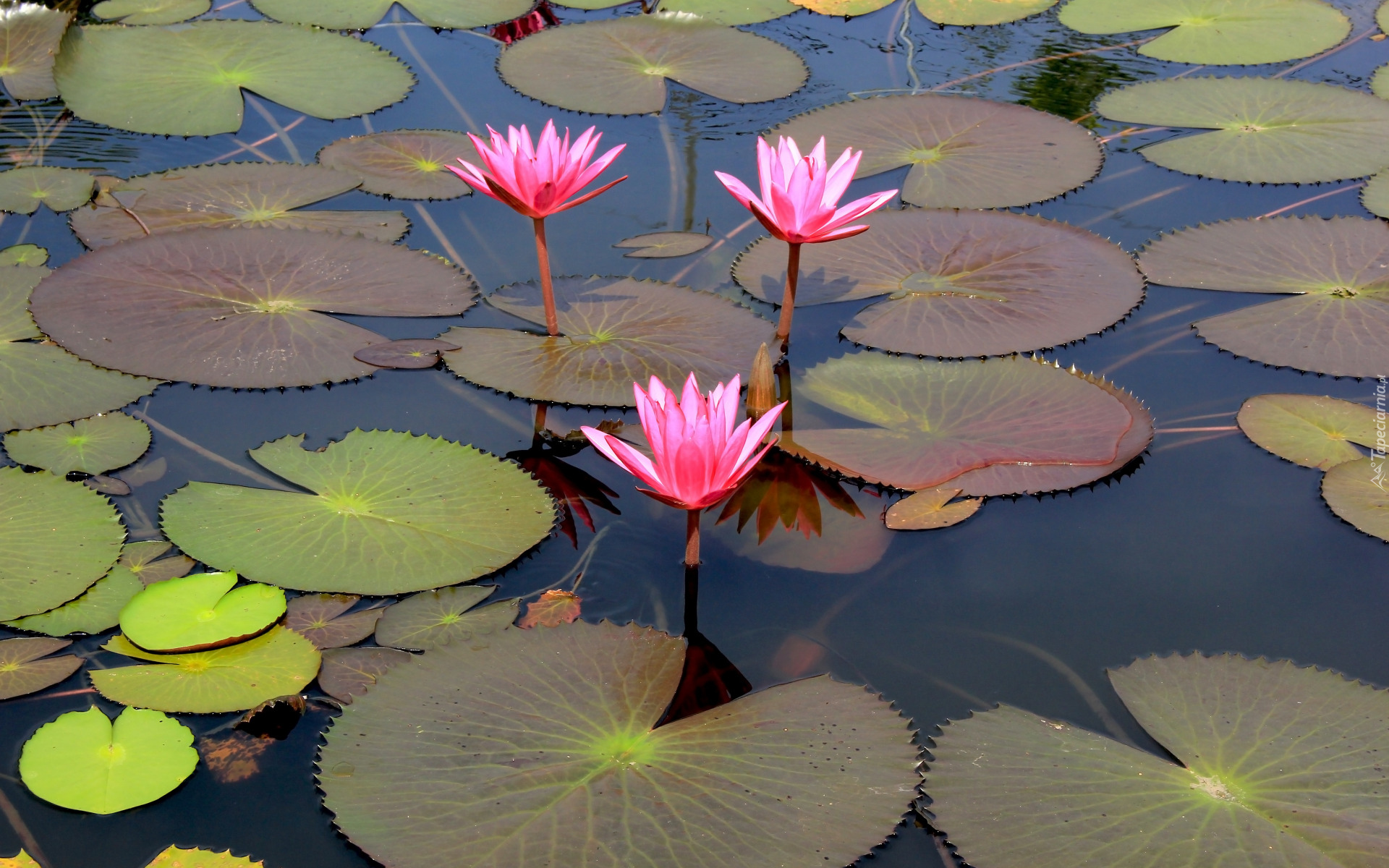 Edytor tapety: Trzy różowe lilie wodne