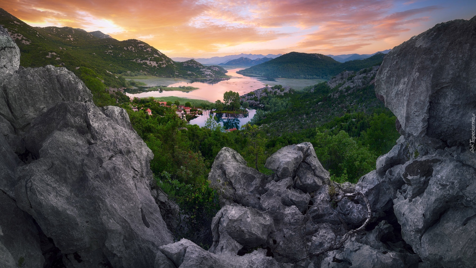 Edytor tapety: Widok zza skał na wieś Karuc w Czarnogórze