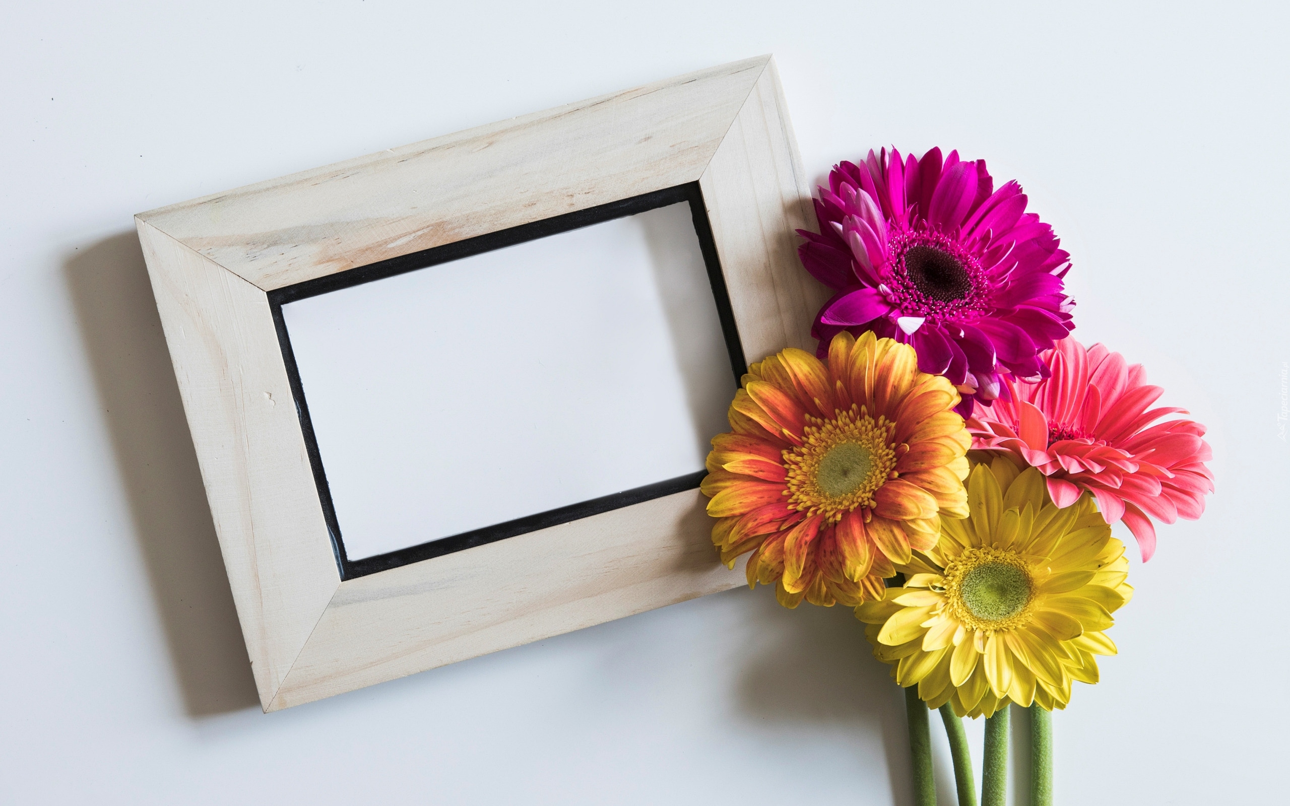 Edytor tapety: Kolorowe gerbery przy ramce