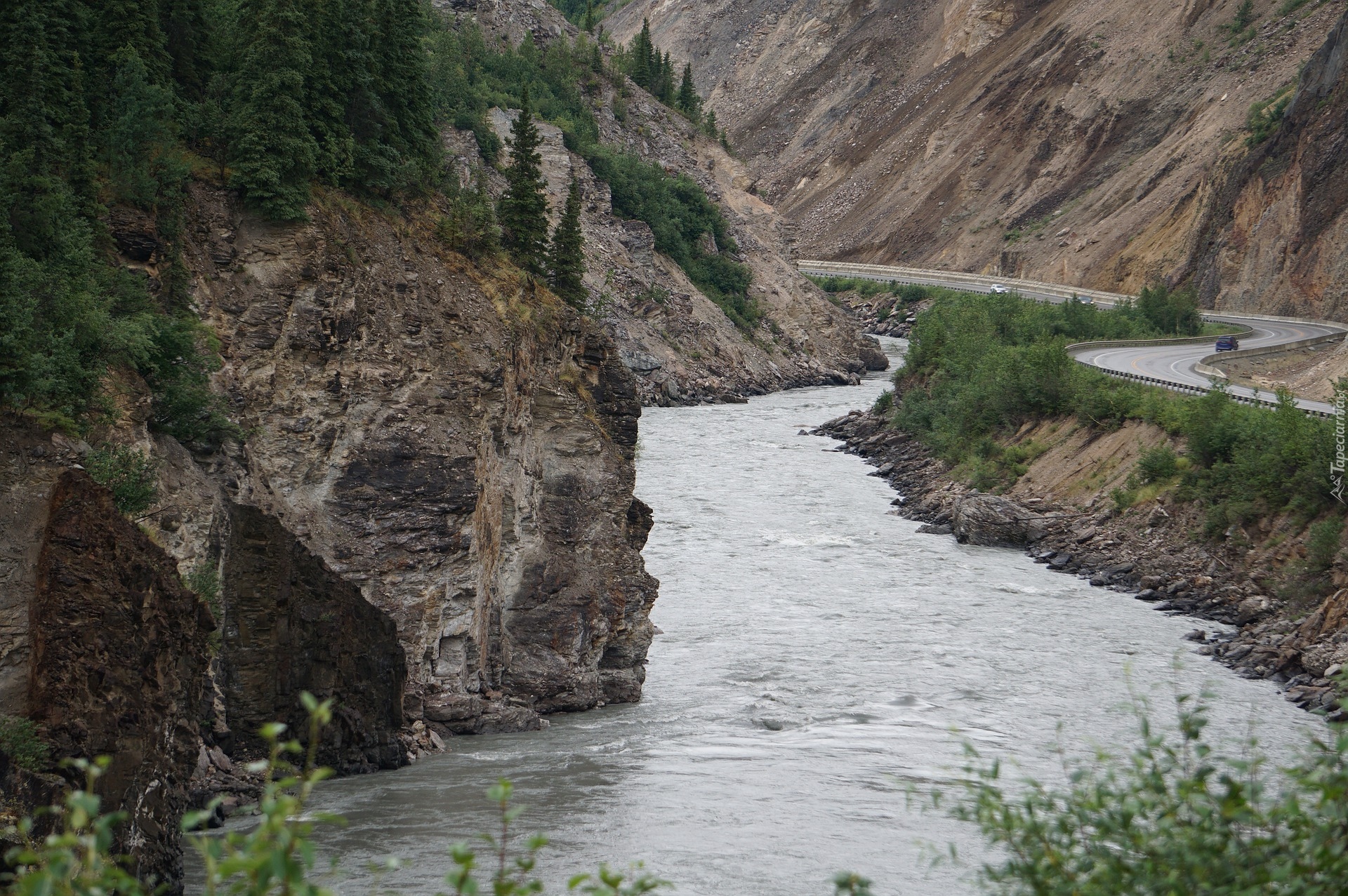 Edytor tapety: Droga nad górską rzeką