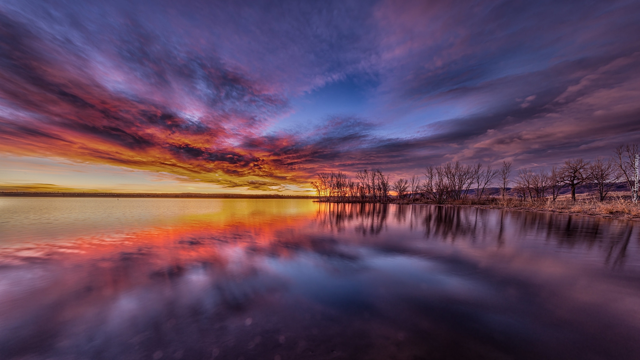 Edytor tapety: Odbicie wschodu słońca w jeziorze Chatfield